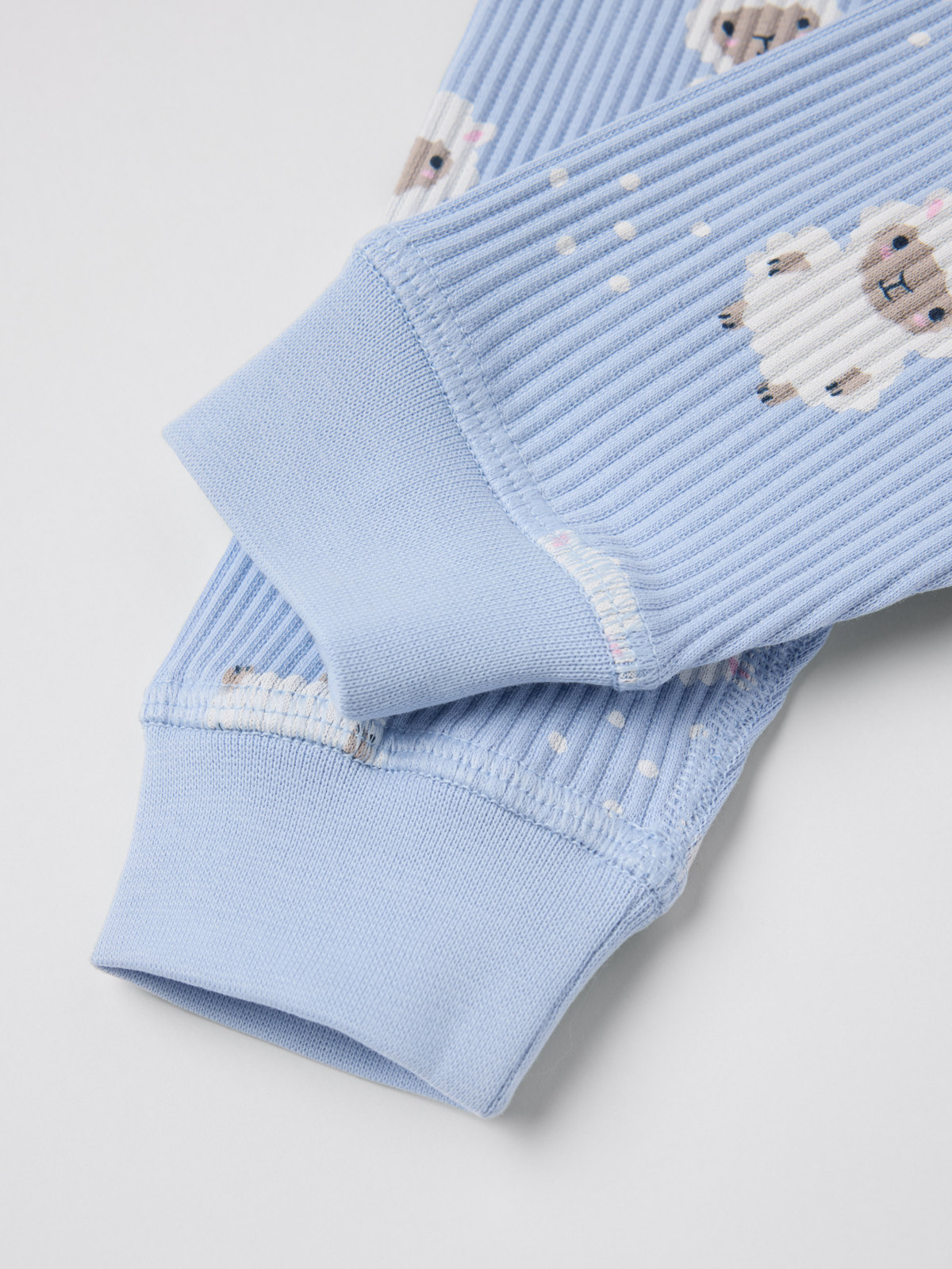 Ribbad byxa i mjuk ekologisk bomull för baby. Byxan är sydd med extra mjuka, platta sömmar som inte skaver mot känslig hud och har mjuka muddar i benslut och justerbar midja med knapphålsresår.