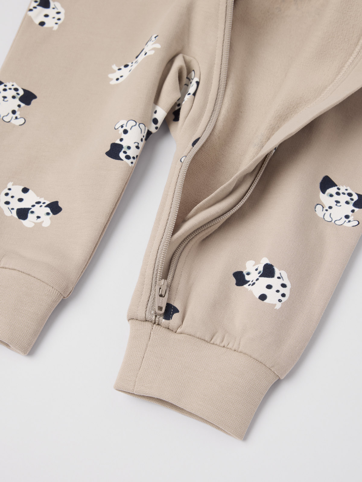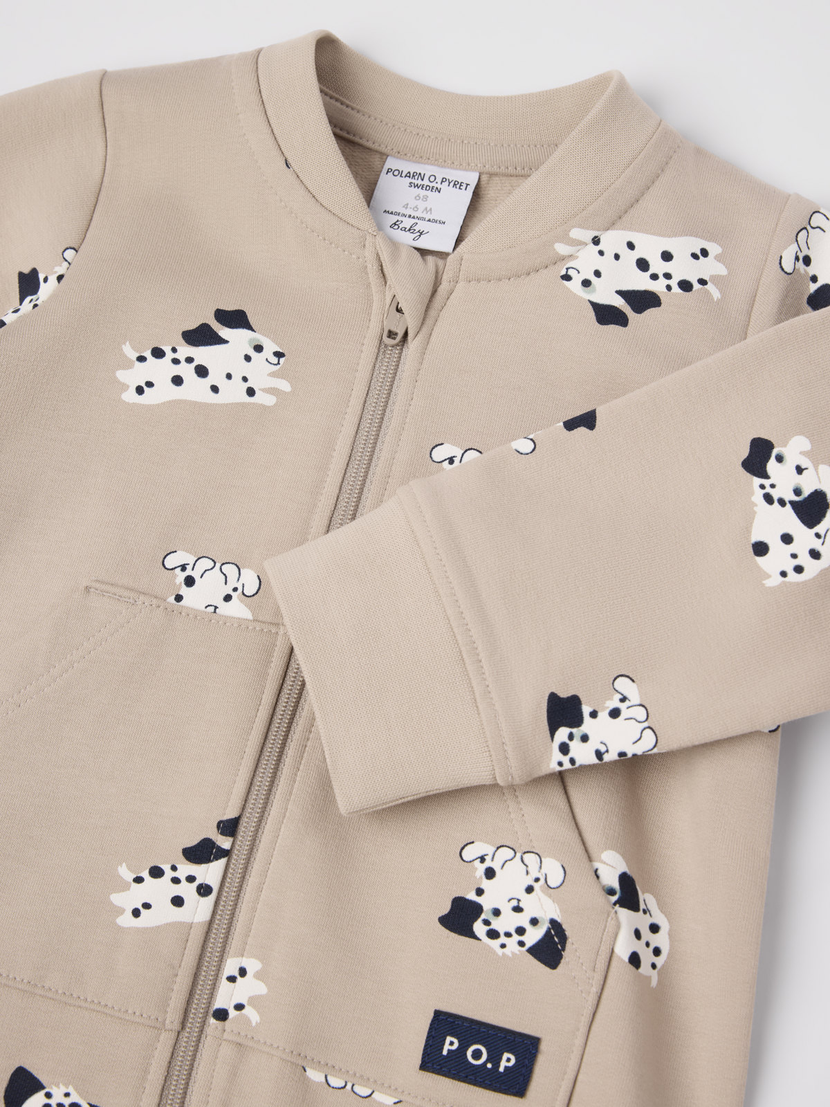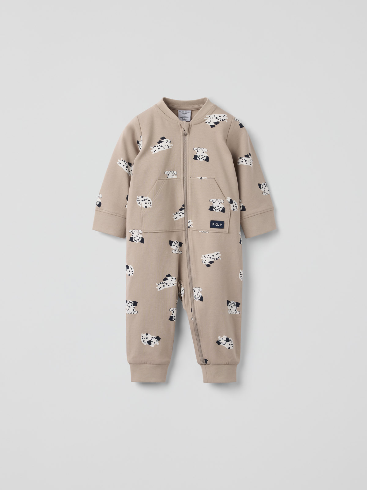 Mjuk overall i ekologisk bomull med skön sweatshirtkvalitet och borstad insida för baby. Overallen har mjuka, ribbade muddar vid ärm- och benslut för skön passform. Den långa dragkedjan från hals till benslut underlättar klädbyten, den har även ett skydd högst upp för att inte skava mot haka och kind.