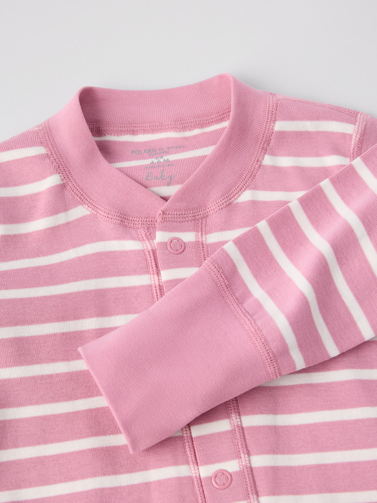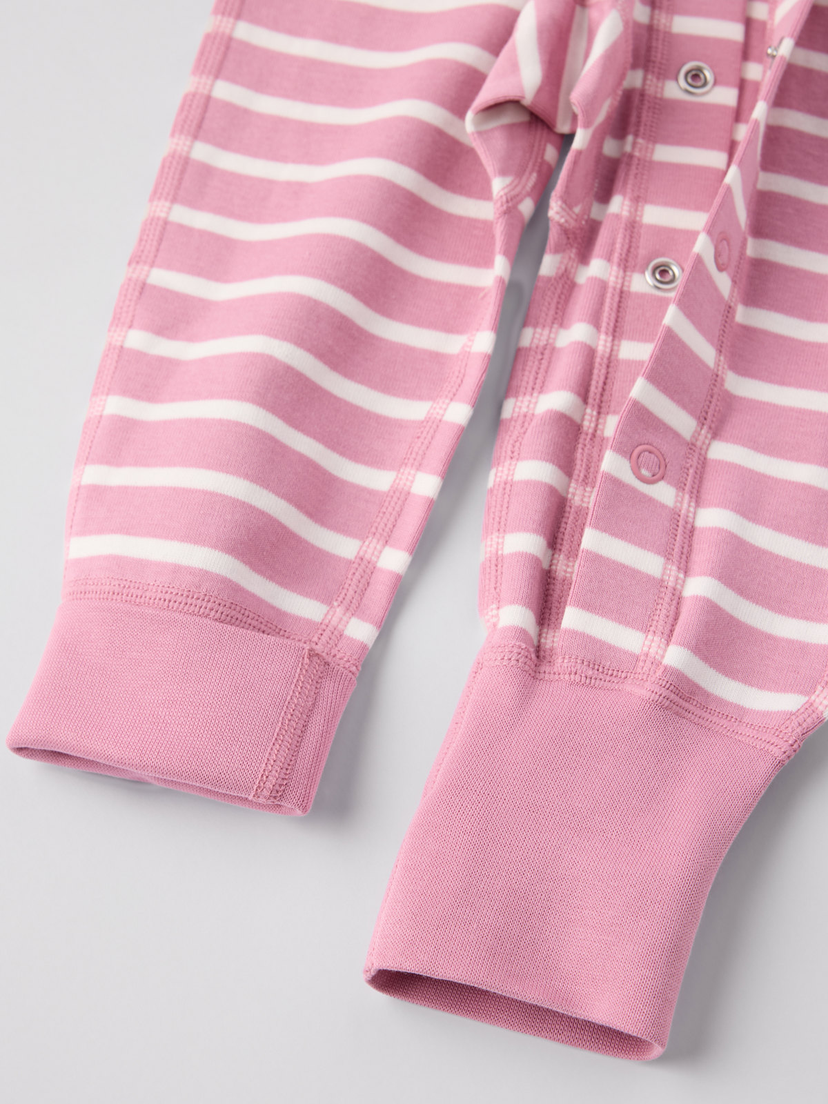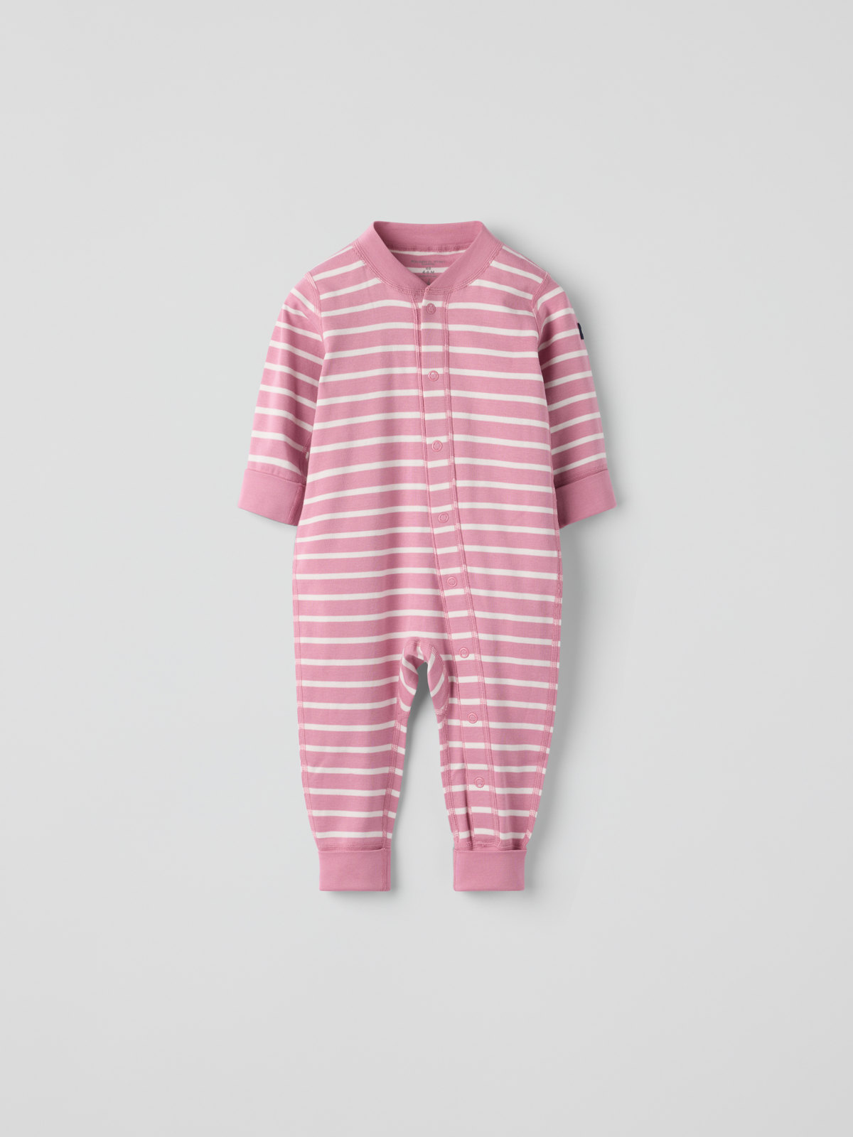 Vår klassiska randiga overall i mjuk ekologisk bomull – perfekt som både pyjamas och mysplagg! Overallen är sydd med extra mjuka, platta sömmar som är skonsamma mot känslig hud. Muddarna vid ärm- och benslut är extra långa och går att vika ned allteftersom barnet växer. Den långa knappslån från hals till benslut underlättar klädbyten.