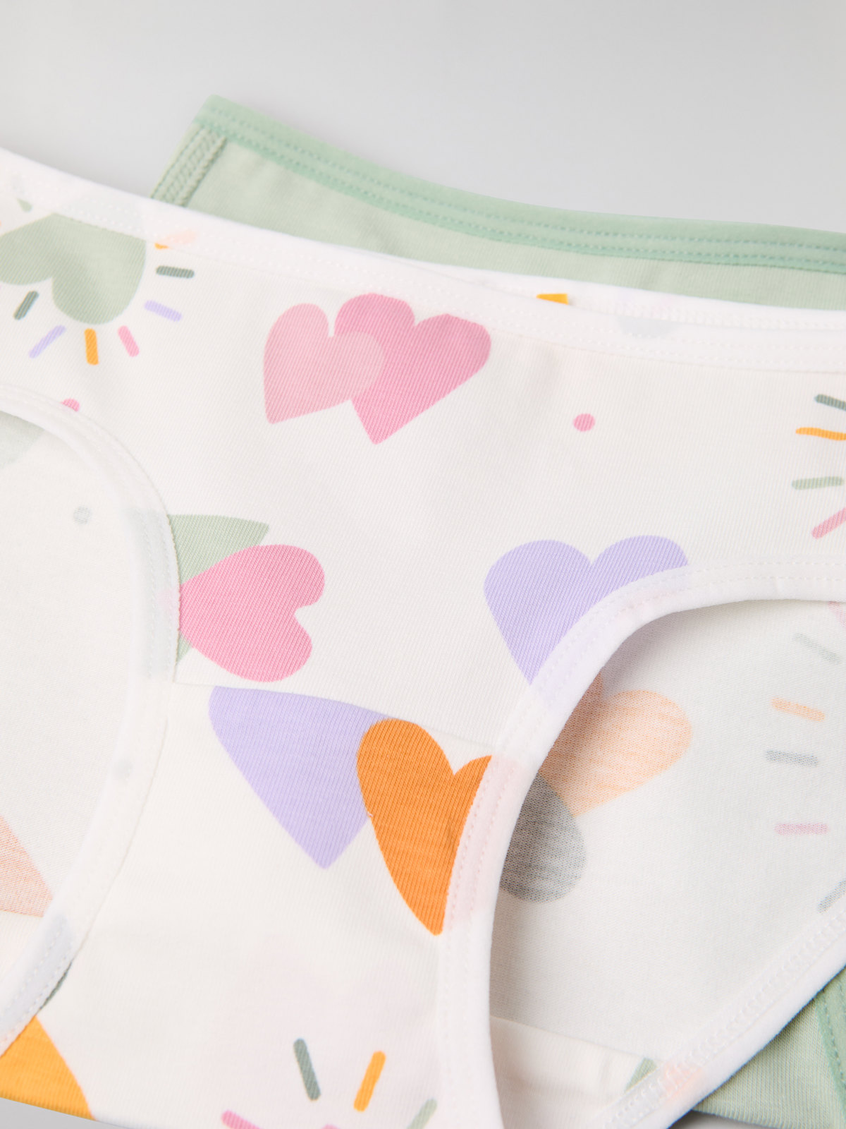 Trosa i mjuk ekologisk bomull, helmönstrade med hjärtan. Trosorna är sydda med extra mjuka sömmar som inte skaver.