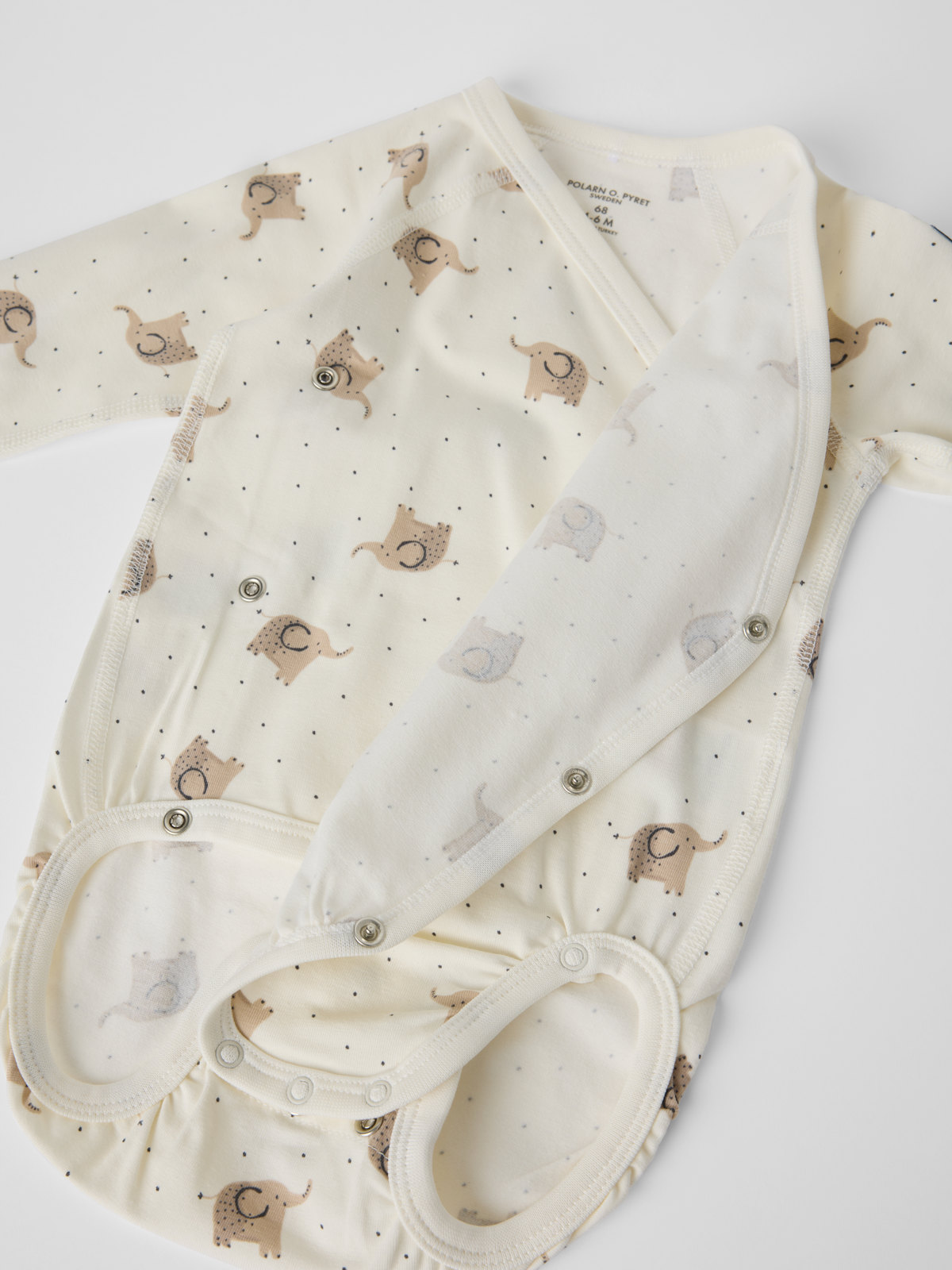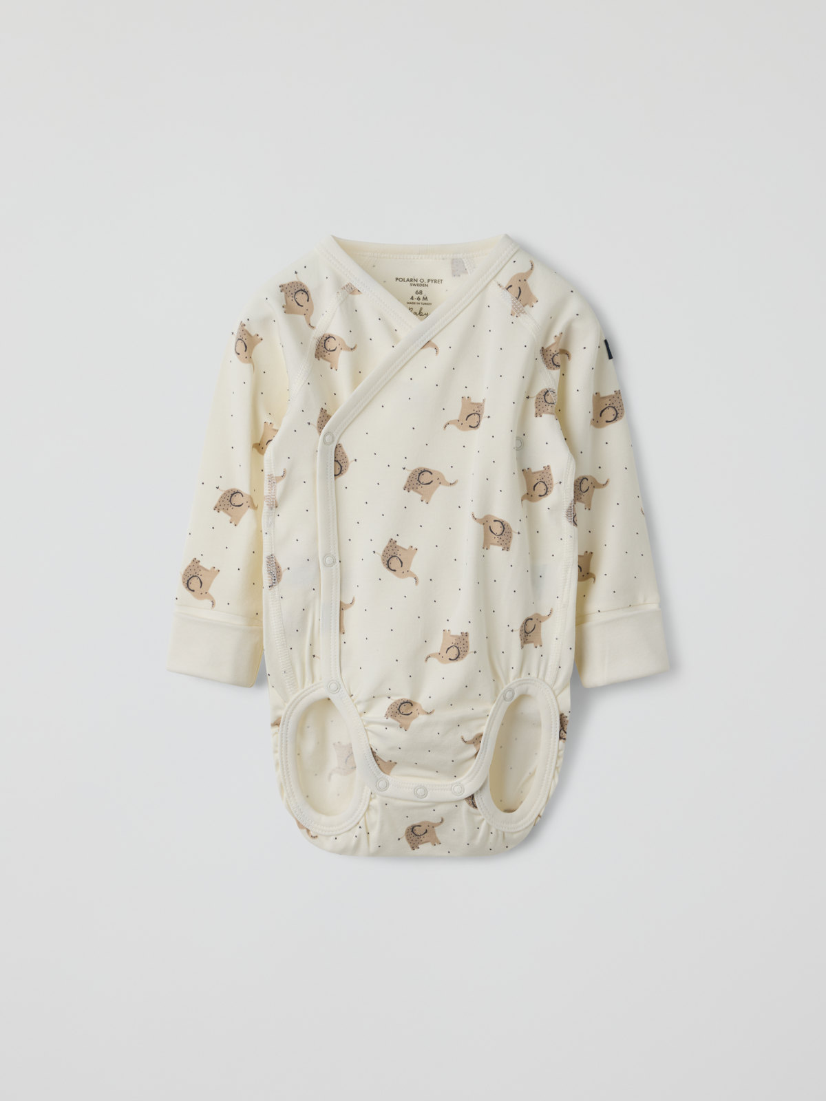 Omlottbody i mjuk ekologisk bomull, sydd med extra mjuka sömmar och skonsam mot känslig hud. Bodyn matchar fint med hela kollektionen. Tryckknapparna längs omlottöppningen och i grenen underlättar klädbyten.