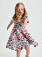 Kortärmad snurrklänning i mjuk ekologisk bomull – ett måste i sommargarderoben! Klänningen är helmönstrad med jordgubbar och har extra vidd i kjolen som står ut fint när man snurrar. Stängs med knappslå bak i ryggen.