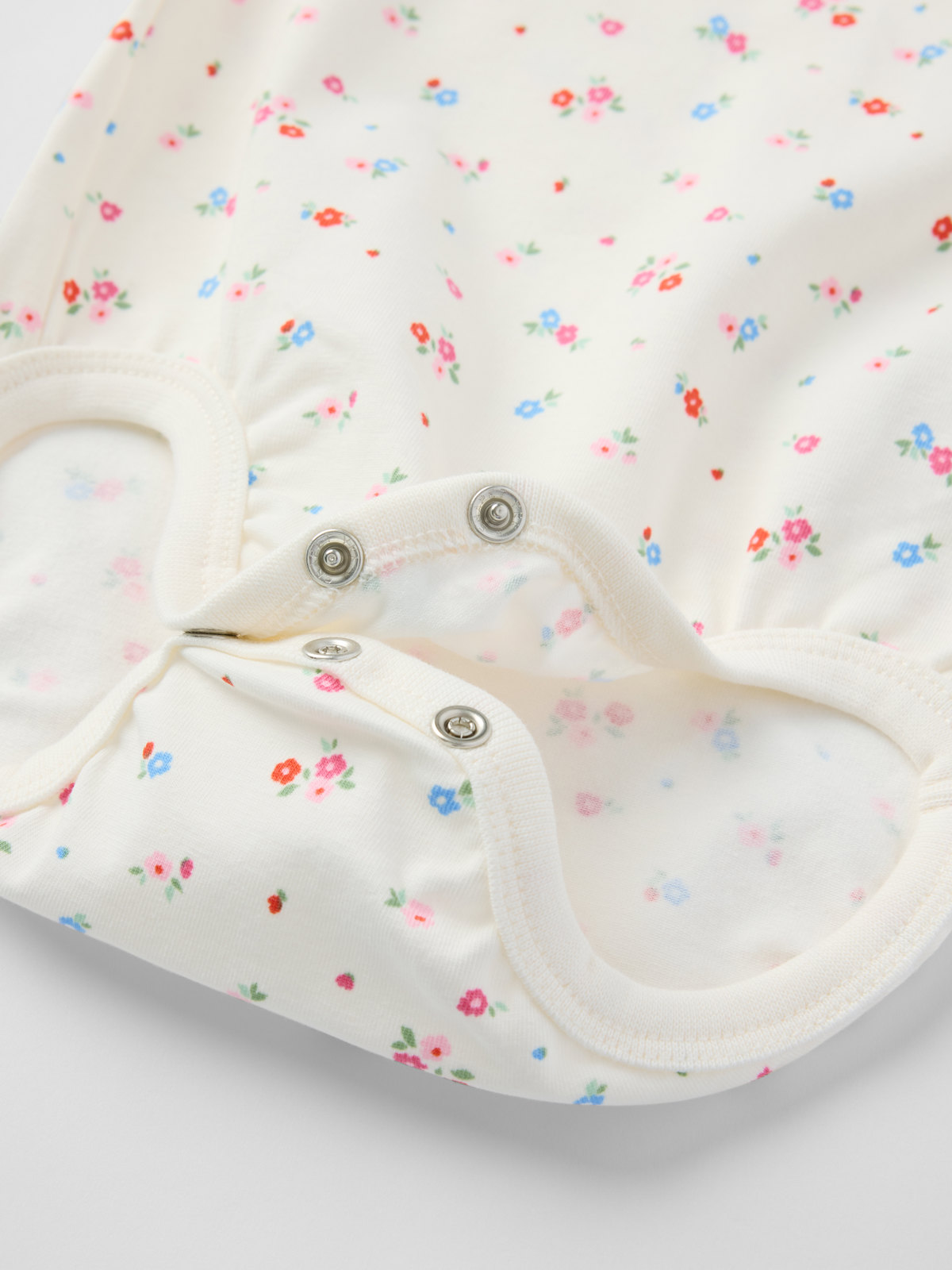 Tryckknapparna på ena axeln och i grenen förenklar klädbyten. Storlek 50-62 har tryckknappar på båda axlarna.