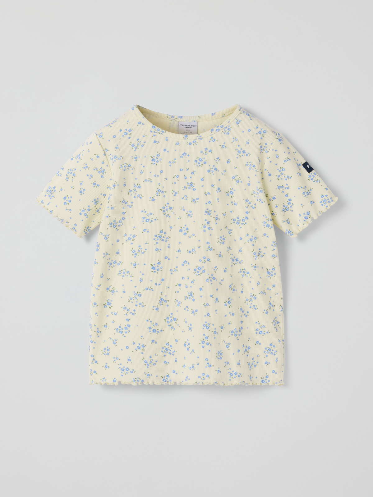 Ribbad t-shirt i mjuk mix av Tencel™ lyocell och ekologisk bomull. Materialmixen är sval, skön och skonsam mot känslig hud. T:shirten har söt uddkant i ärmslut och i nederkant.