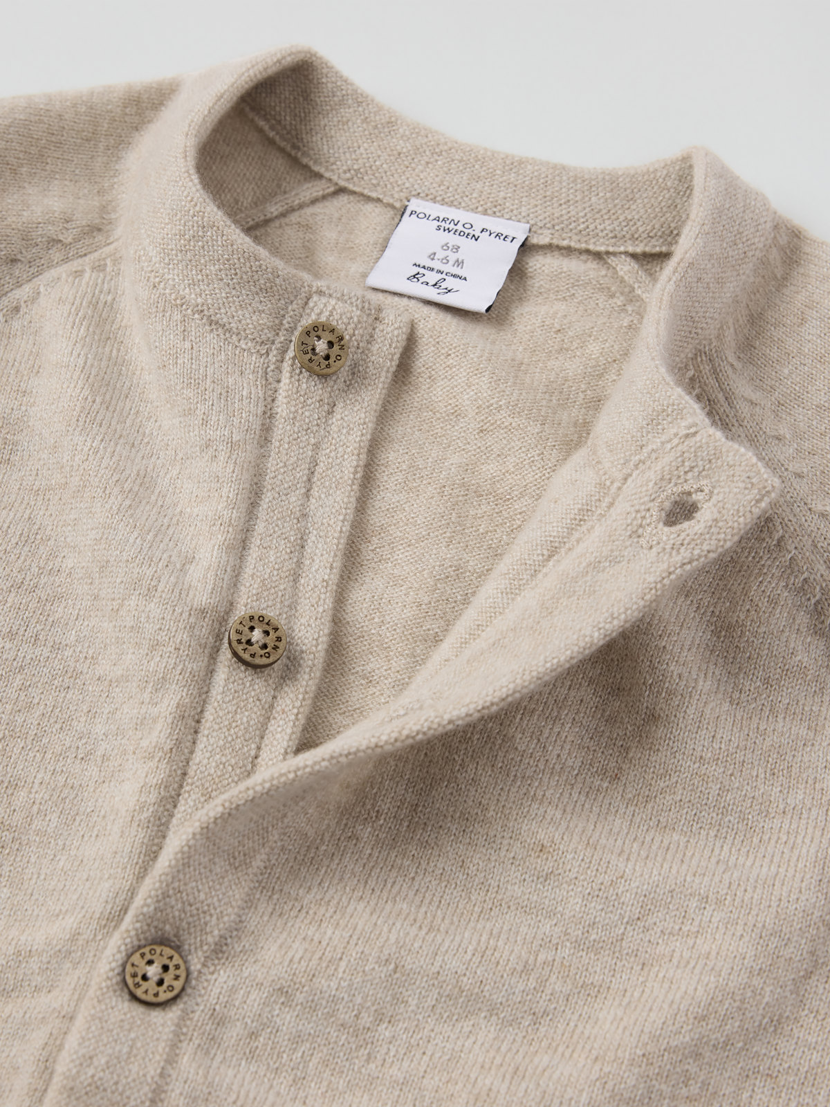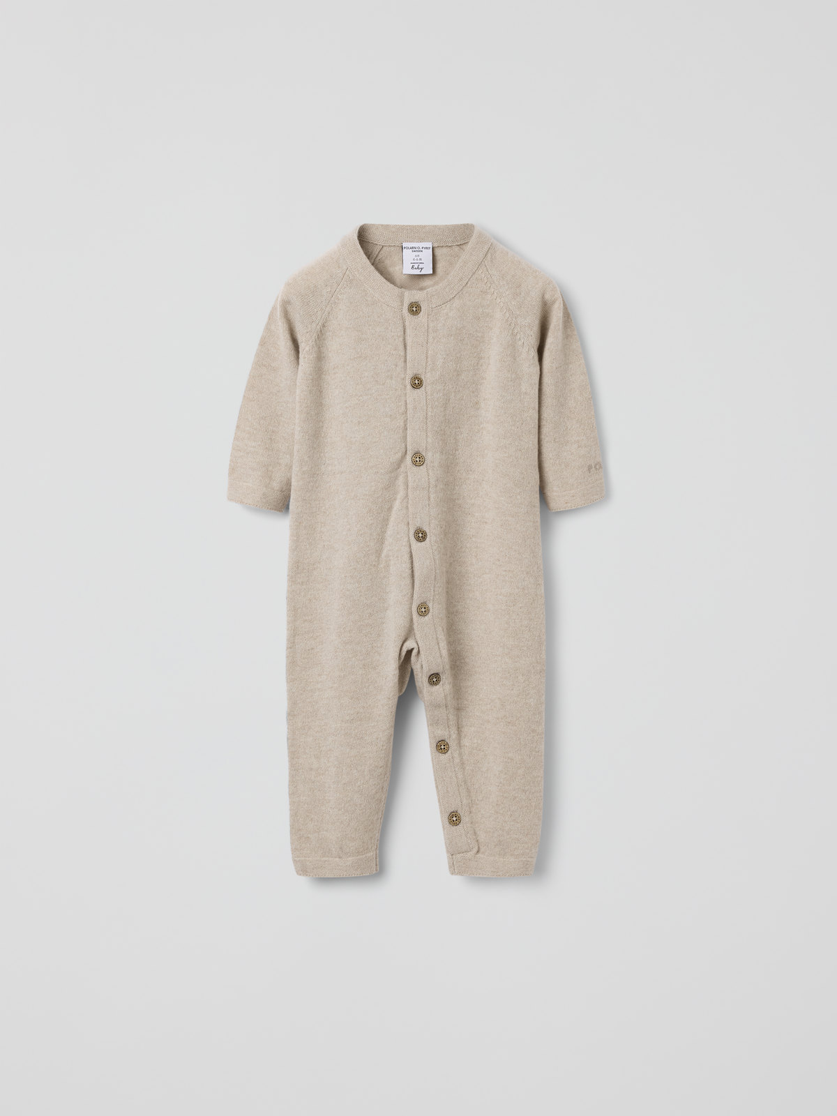 Stickad overall i 100% kashmir för baby – oslagbart mjuk i kylan! Overallen är sydd med extra mjuka sömmar som är skonsamma mot känslig hud. Muddarna i ärm- och beslut ger en skön passform. Den långa knappslån från hals till benslut underlättar klädbyten.