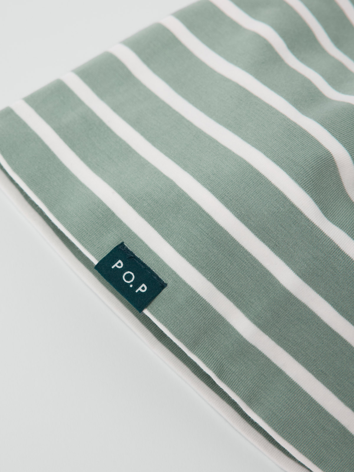Tunn, klassiskt randig mössa i mjuk ekologisk bomullstrikå. Perfekt att ha på vårens och höstens alla utomhusaktiviteter och under hjälmen!