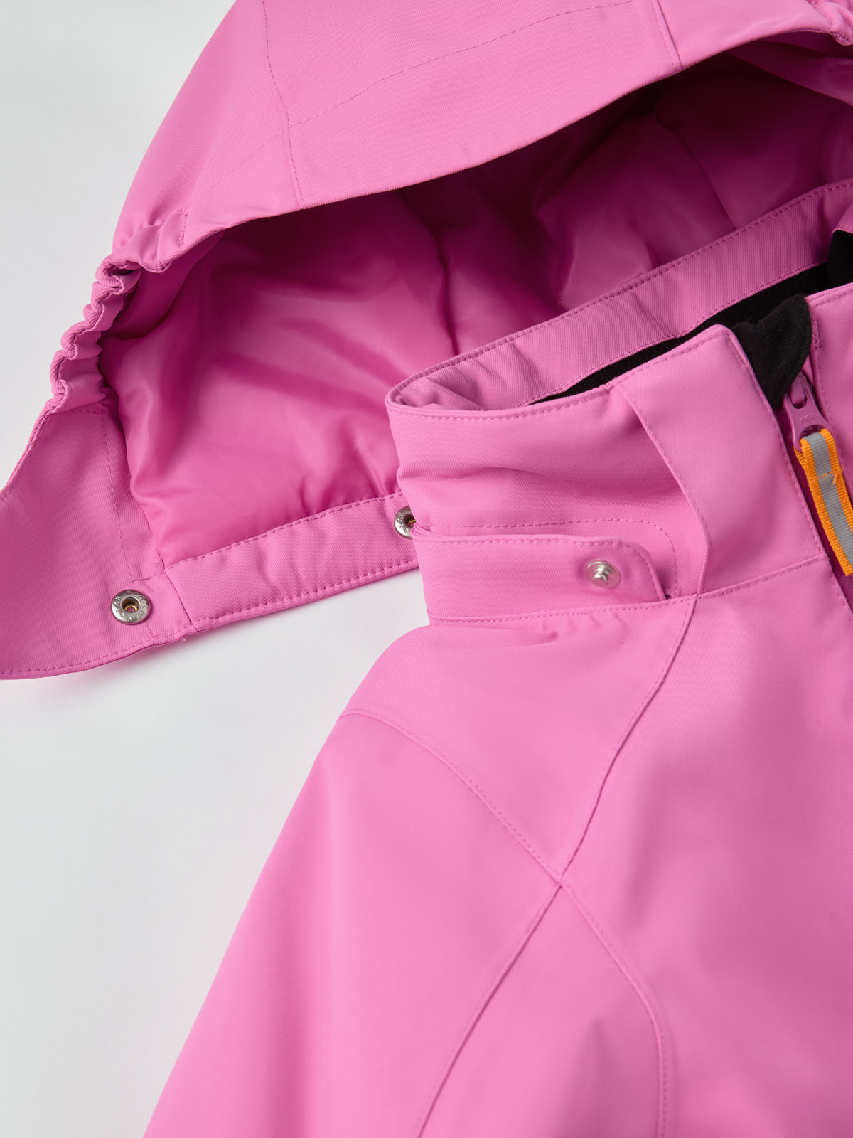 • Reglerbar huva som är avtagbar för ökad säkerhet och går att fästa med tryckknappar. Den har även resår för bästa skydd och passform