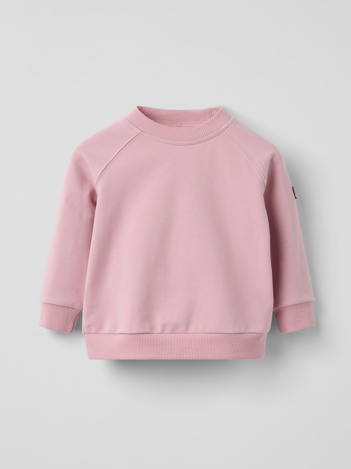 Tröja i 100 % ekologisk bomull med mjuk sweatshirtkvalitet, för baby. Perfekt att ha till alla tillfällen! Tröjan har ribbad mudd i halsringning och ärmslut. Tryckknapparna bak på ena axeln underlättar klädbyten.