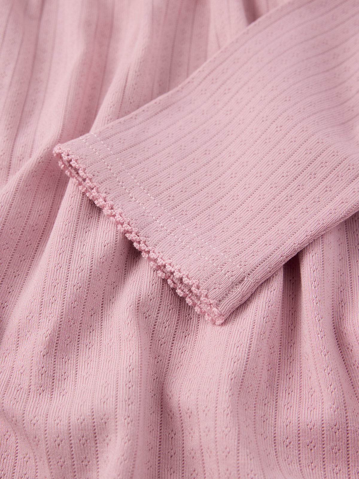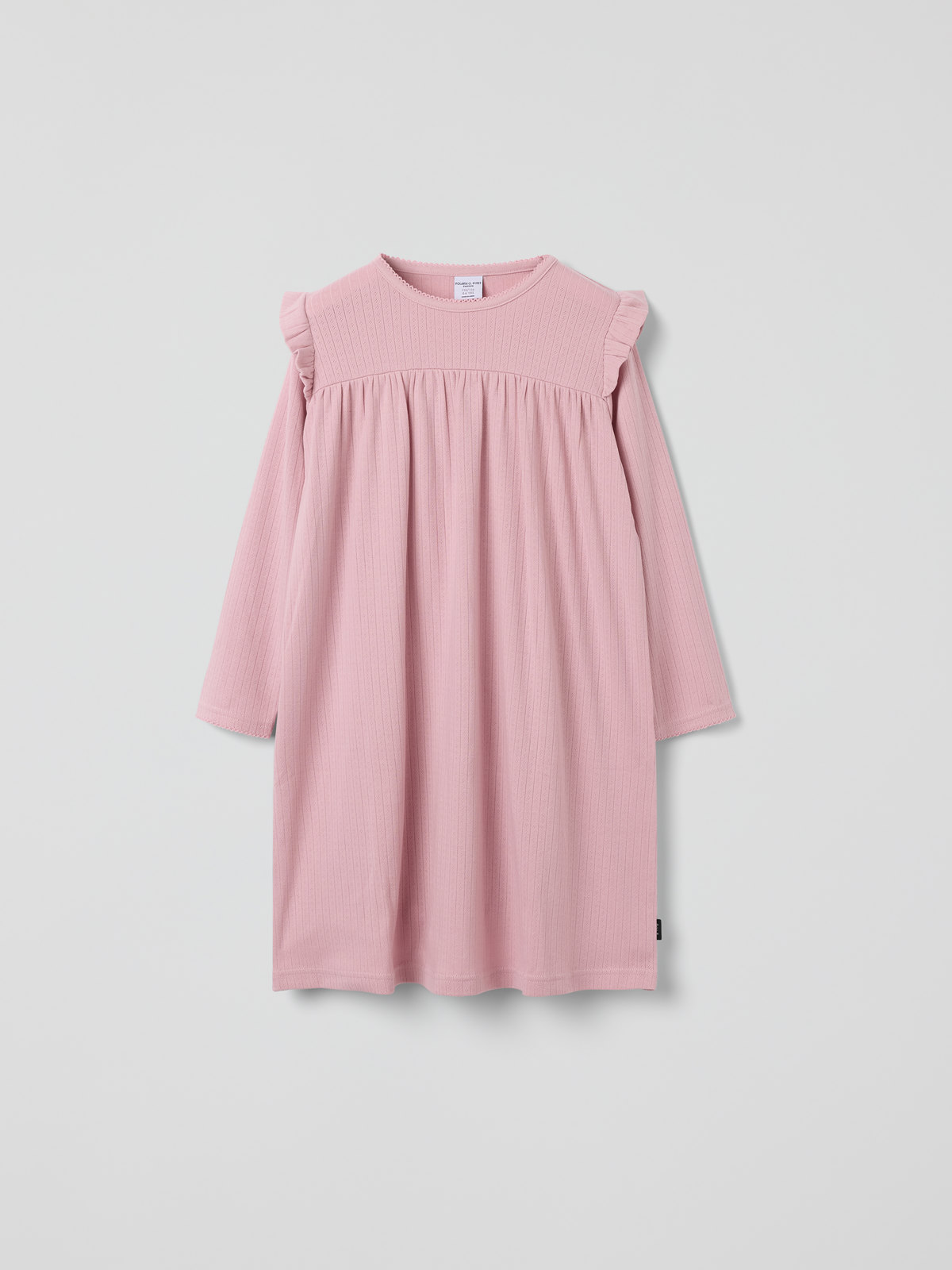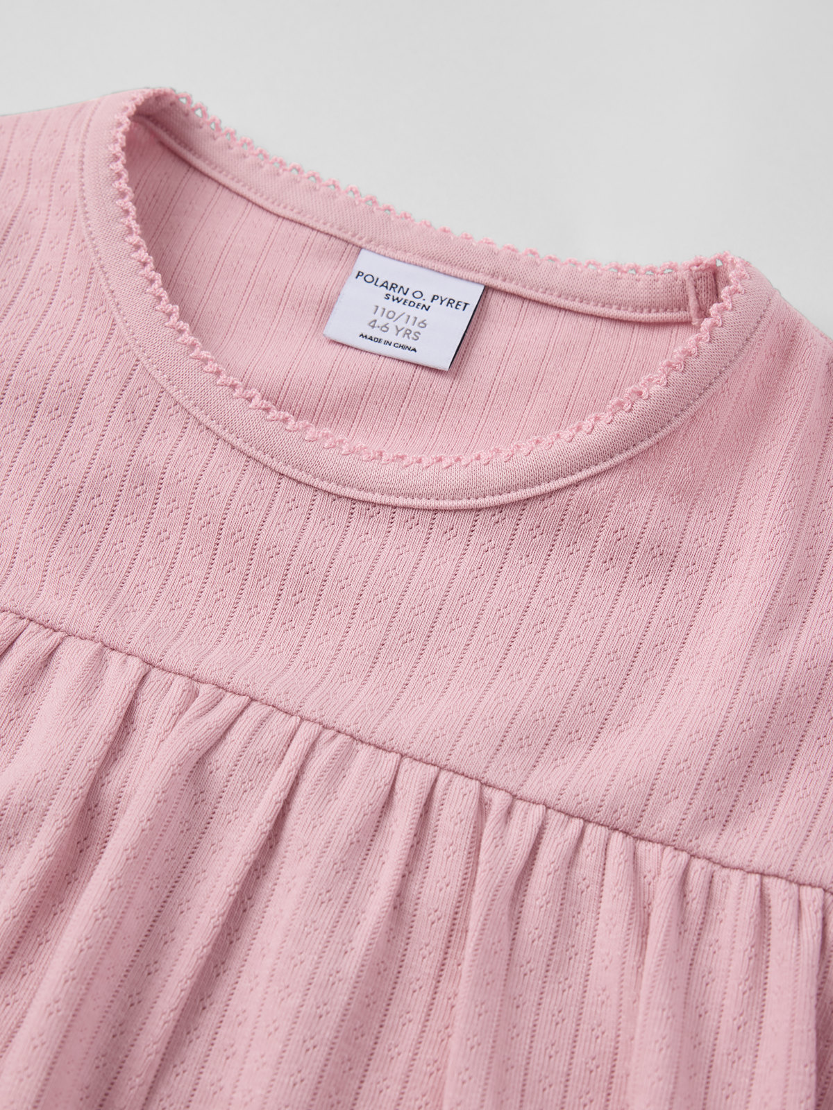 Nattlinne i mjuk pointeille av Tencel™ lyocell och ekologisk bomull sytt med extra mjuka, platta sömmar som är skonsamma mot känslig hud. Nattlinnet har söta volanger över axlarna.
