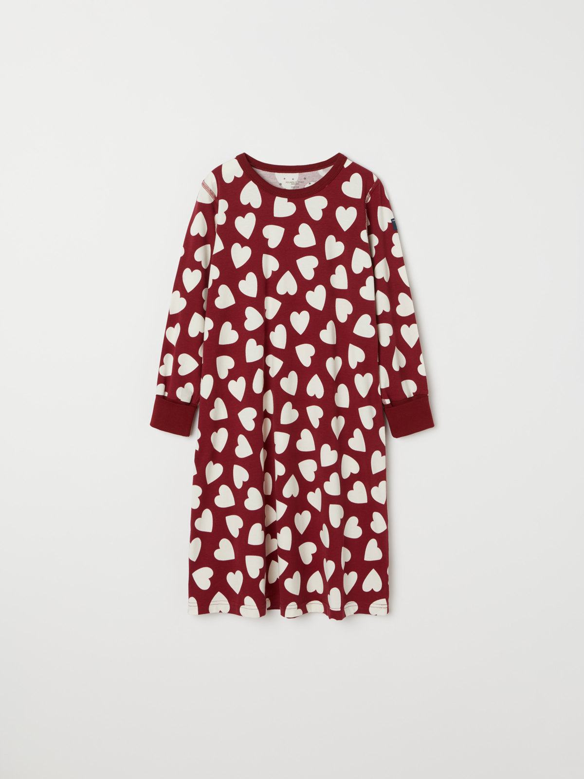 Mjukt och skönt nattlinne i 100 % ekologisk bomull. Nattlinnet är helmönstrat med hjärtan och har extra lång mudd vid ärmsluten.