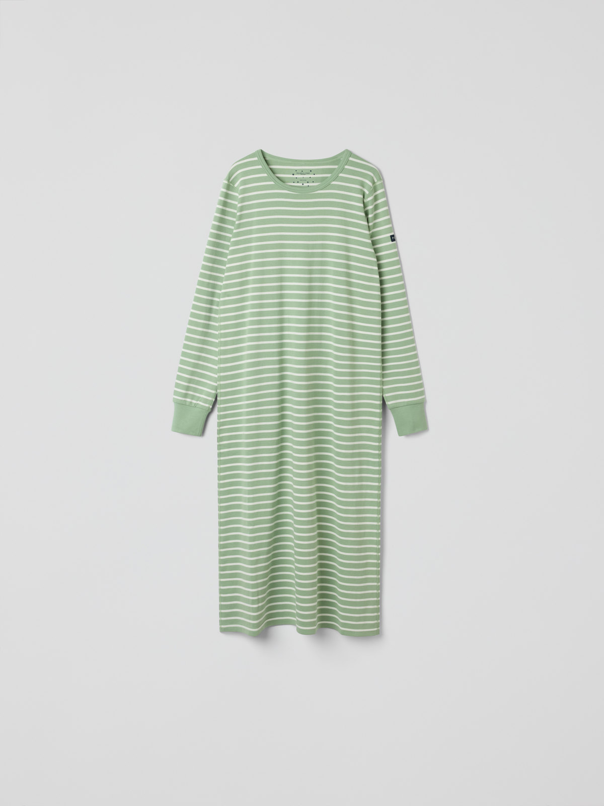 Mjukt och skönt nattlinne i 100 % ekologisk bomull, i vuxenstorlekar. Nattlinnet har vår klassiska rand och mjuk mudd vid ärmslut.