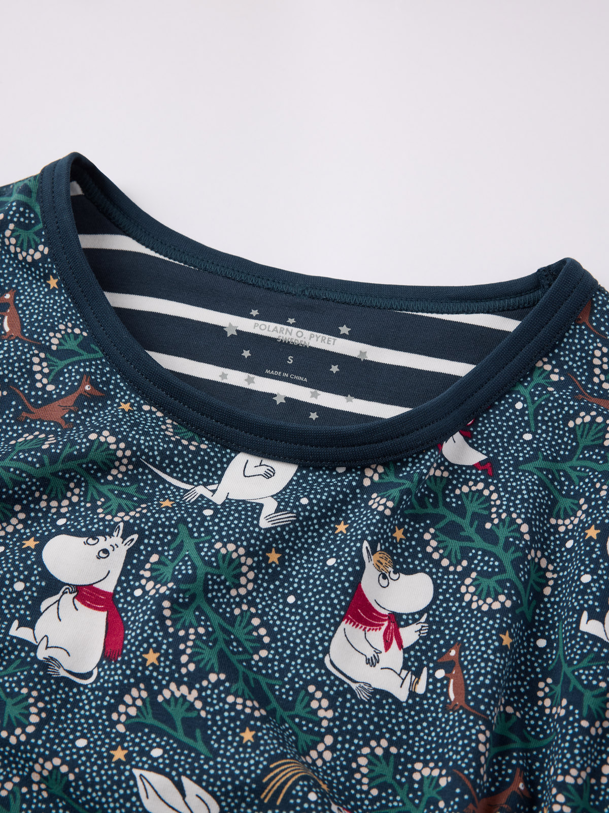 Mjukt och skönt nattlinne i ekologisk bomull för vuxen – en del av vårt älskade designsamarbete för att fira Mumins 80-årsjubileum 2025. Nattlinnet är helmönstrat med illustrationer från Tove Janssons berättelser om mumintrollen.