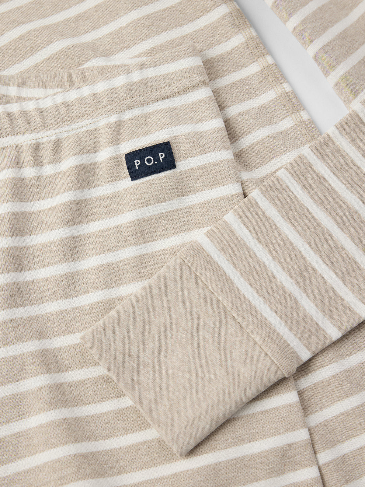 Set med tröja och byxa i vår klassiska rand för vuxen. Tröjan har mjuk ribbad mudd kring halsringning och vid ärmslut. Byxan har elastisk midja och mjuk ribbad mudd vid benslut.