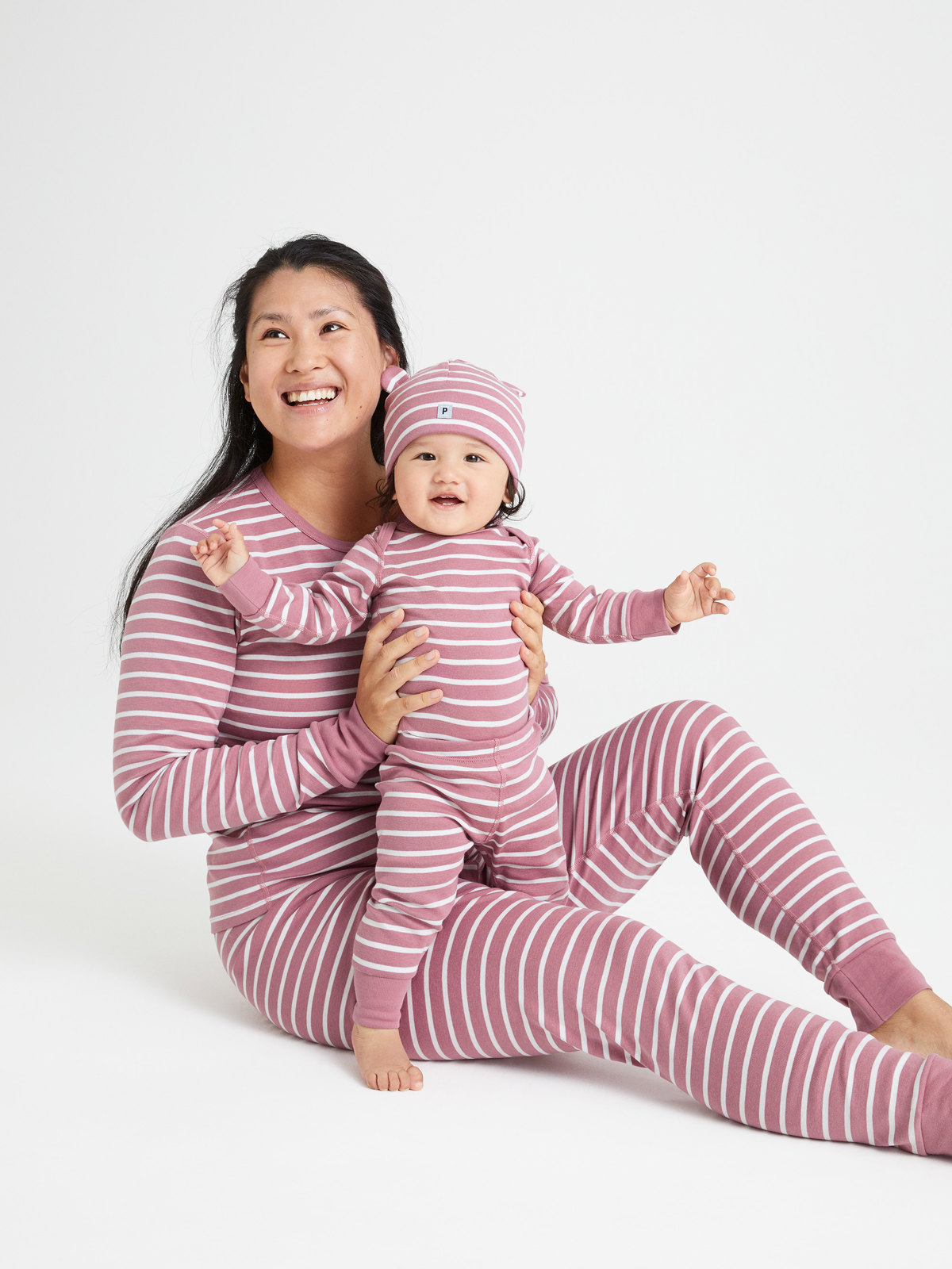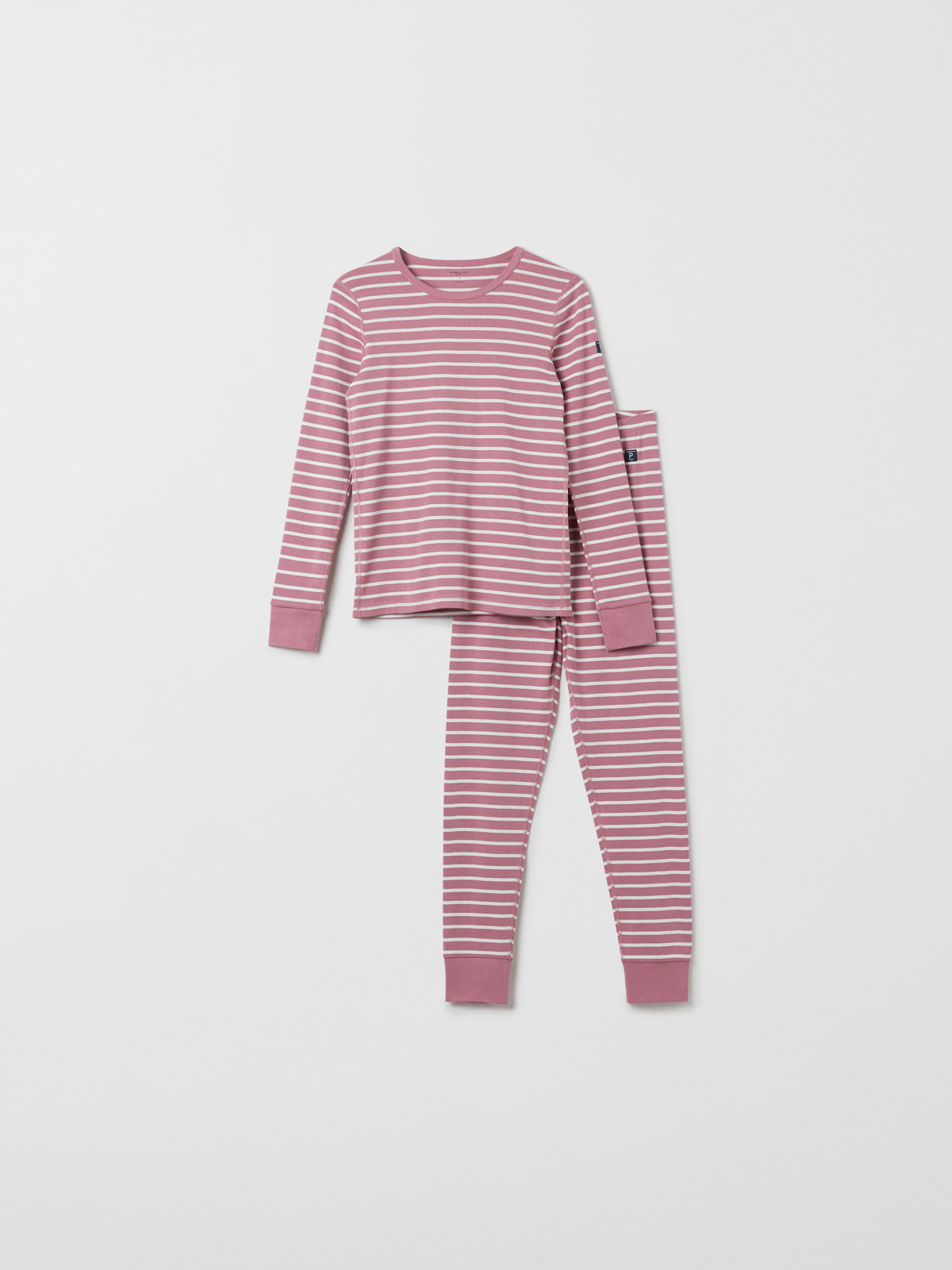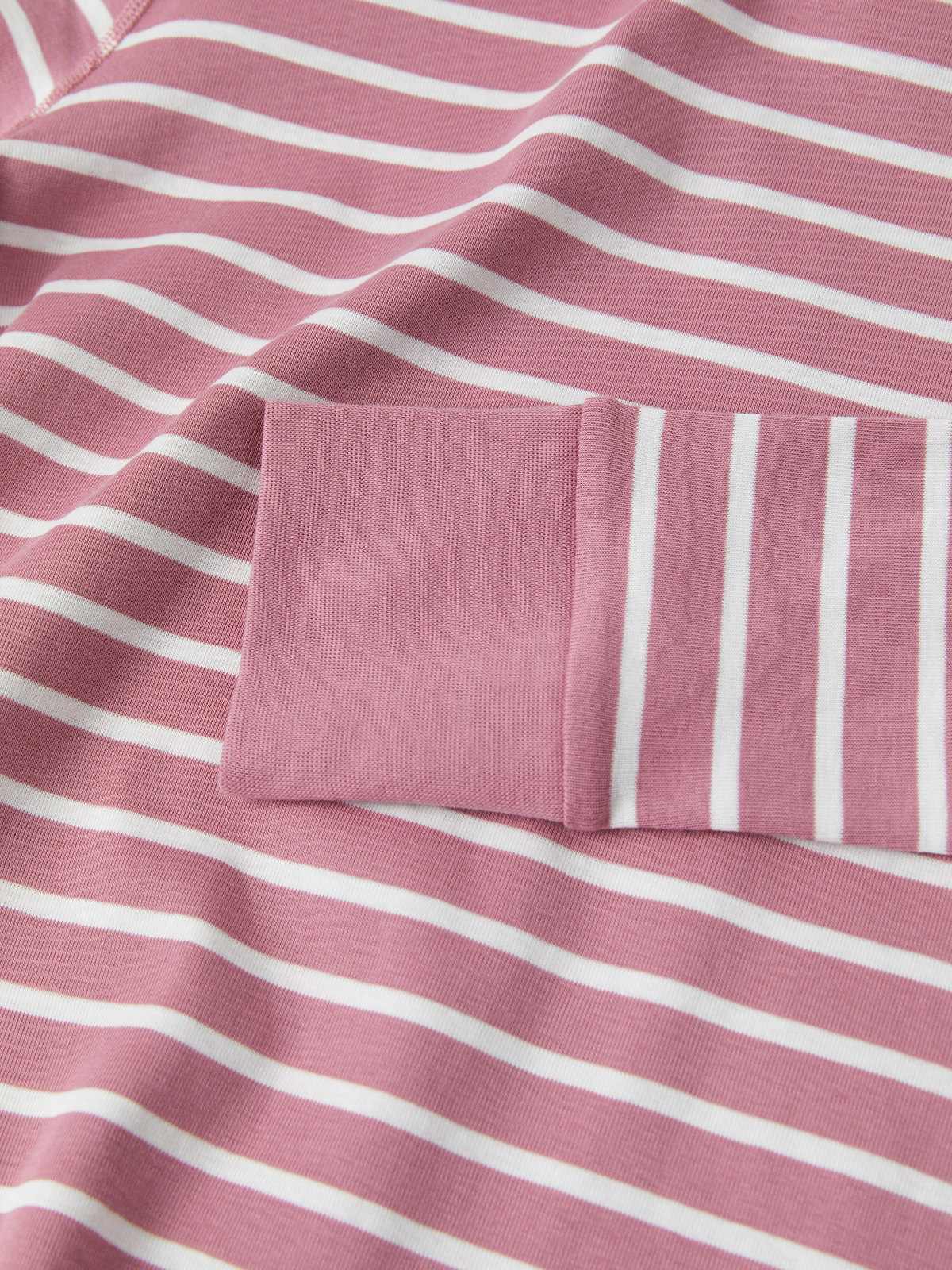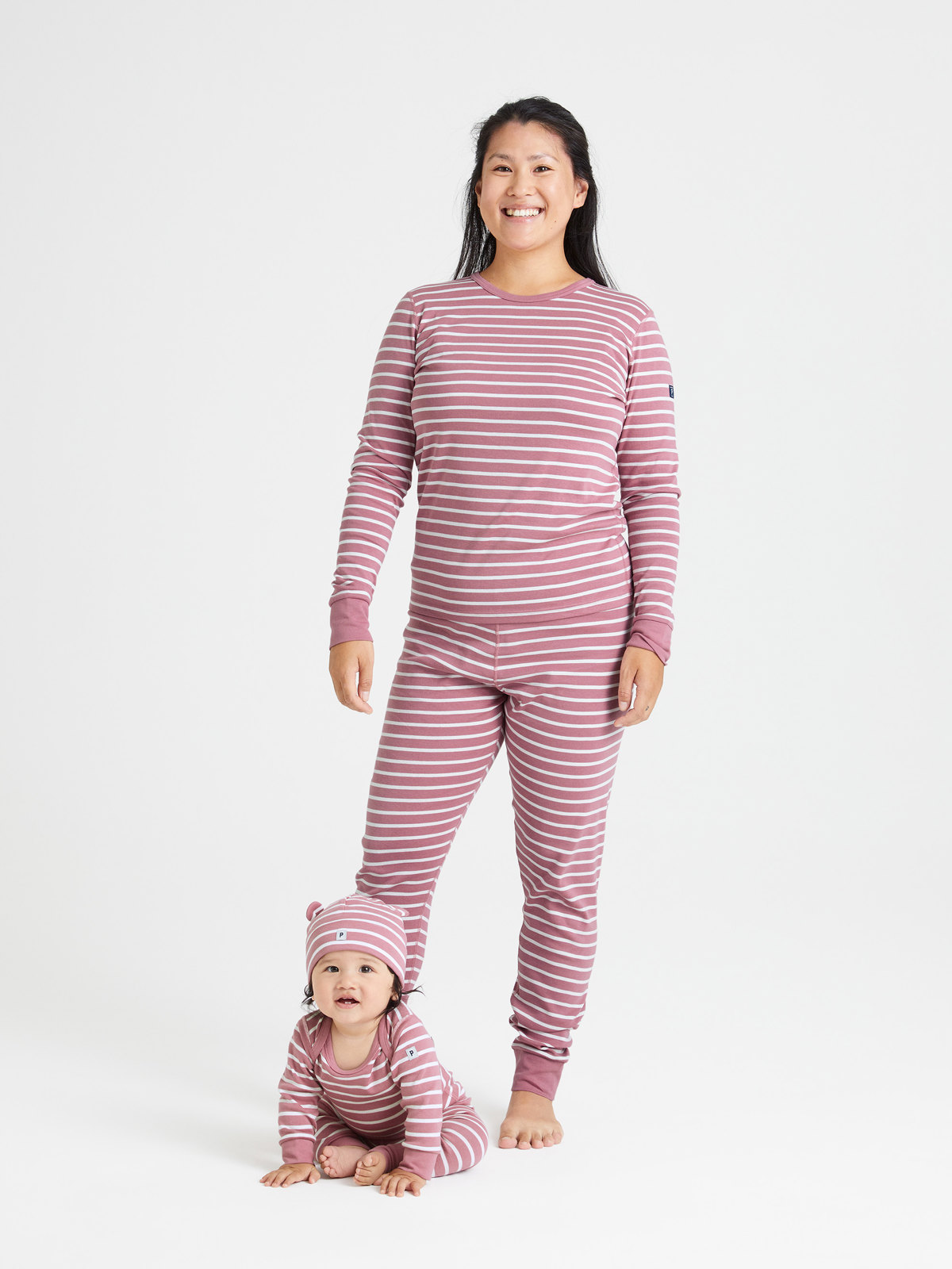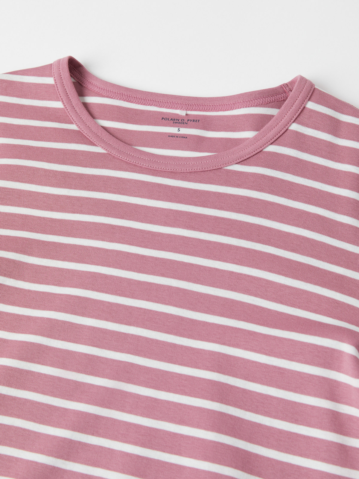 Ett set med tröja och byxa i vår klassiska rand, i vuxen storlekar. Tröjan har mjuk ribbad mudd kring halsringningen och vid ärmsluten. Byxan har elastisk midja och mjuk ribbad mudd vid bensluten. Storlekarna i våra vuxenkläder går enligt standard, så välj den storlek du brukar köpa.
