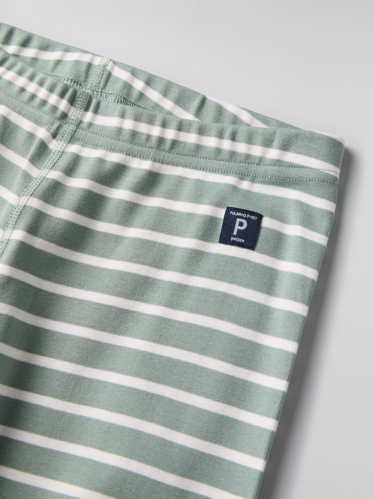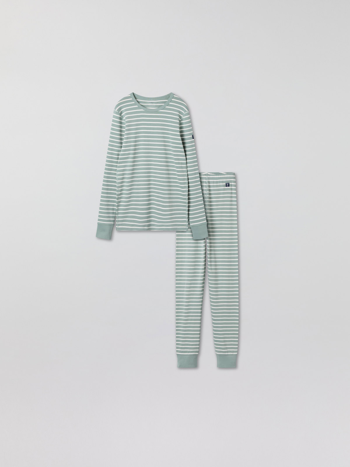 Set med tröja och byxa i vår klassiska rand för vuxen. Tröjan har mjuk ribbad mudd kring halsringning och vid ärmslut. Byxan har elastisk midja och mjuk ribbad mudd vid benslut.