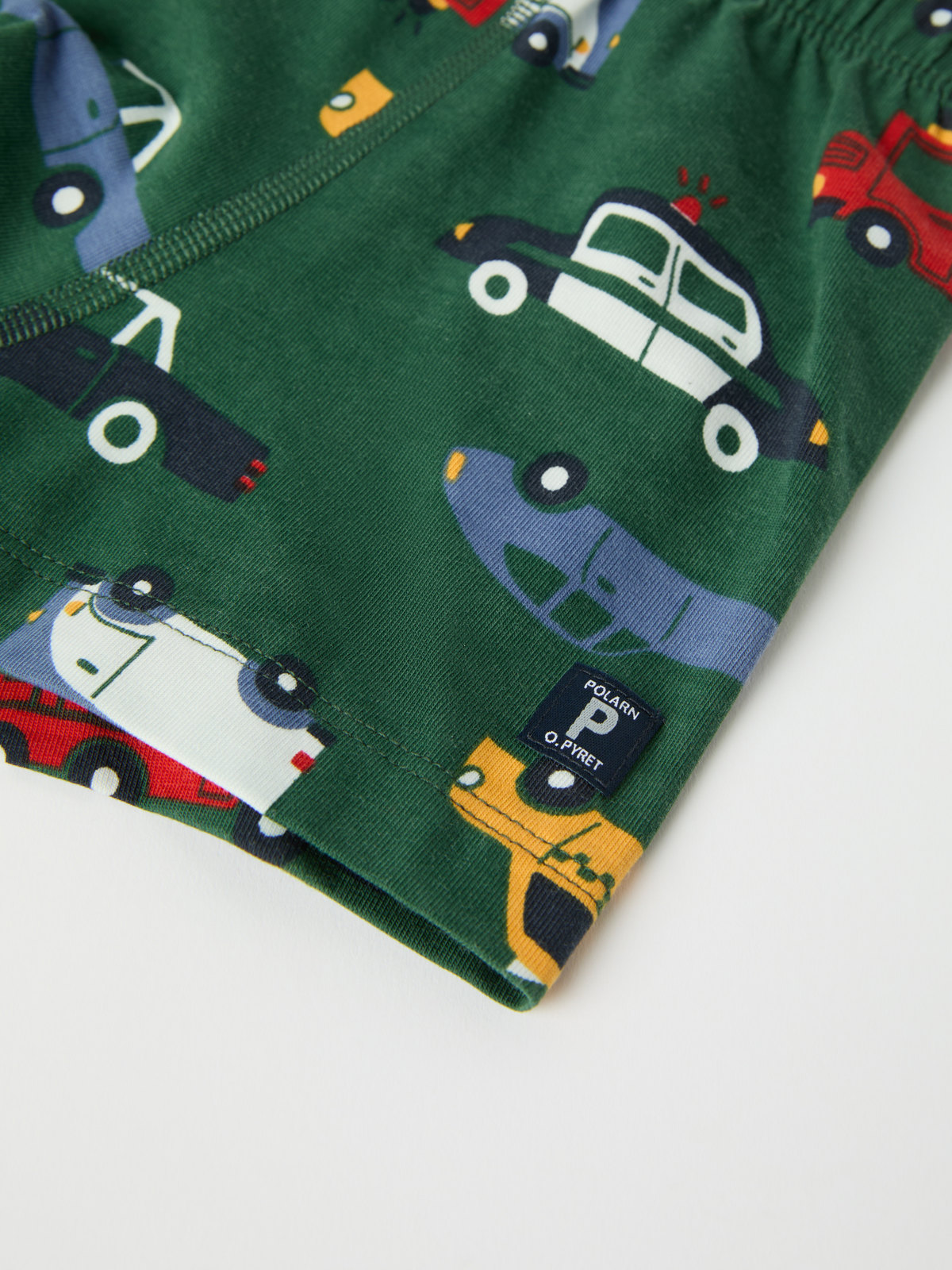 Boxershorts i mjuk ekologisk bomull, helmönstrade med bilar. Boxershortsen är sydda med extra mjuka sömmar som inte skaver.
