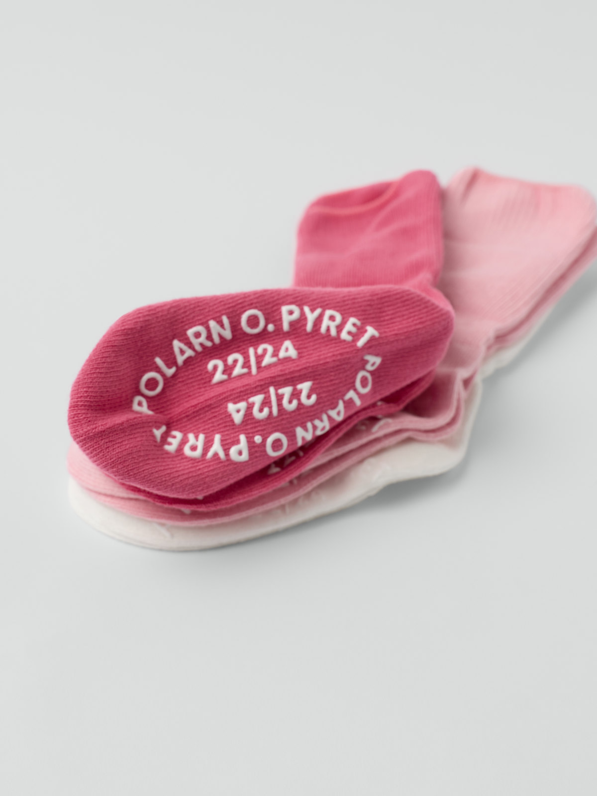 3-pack strumpor i mjuk ekologisk bomull med halkskydd – riktiga kundfavoriter! Strumporna har en lång mudd som kan vikas upp eller ned och ger en skön passform.