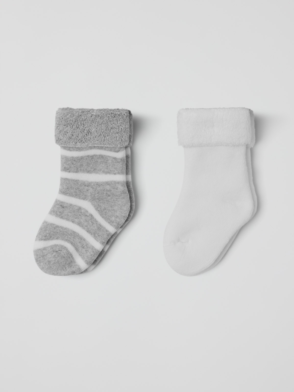 2-pack strumpor i mjuk ekologisk bomull – mjuka favoriter för de allra minsta! Strumporna har lång nedvikbar mudd för skön passform.