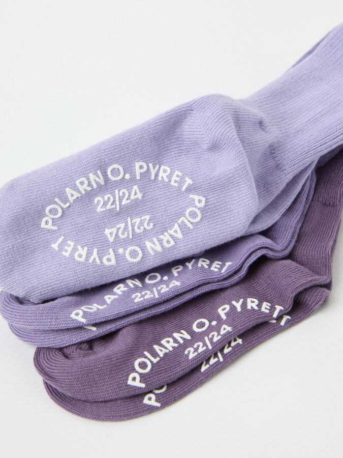 Våra halkstrumpor för barn är tillverkade i mjuk och skön ekologisk bomull och har långa ribbade muddar för perfekt passform. Den smarta designen gör att de sitter kvar på livliga fötter, så att barnen kan springa fritt utan att strumporna åker av. Strumporna har halkskydd på undersidan, vilket ger ett bra grepp på hala golv och gör de perfekta för lek och rörelse inomhus.