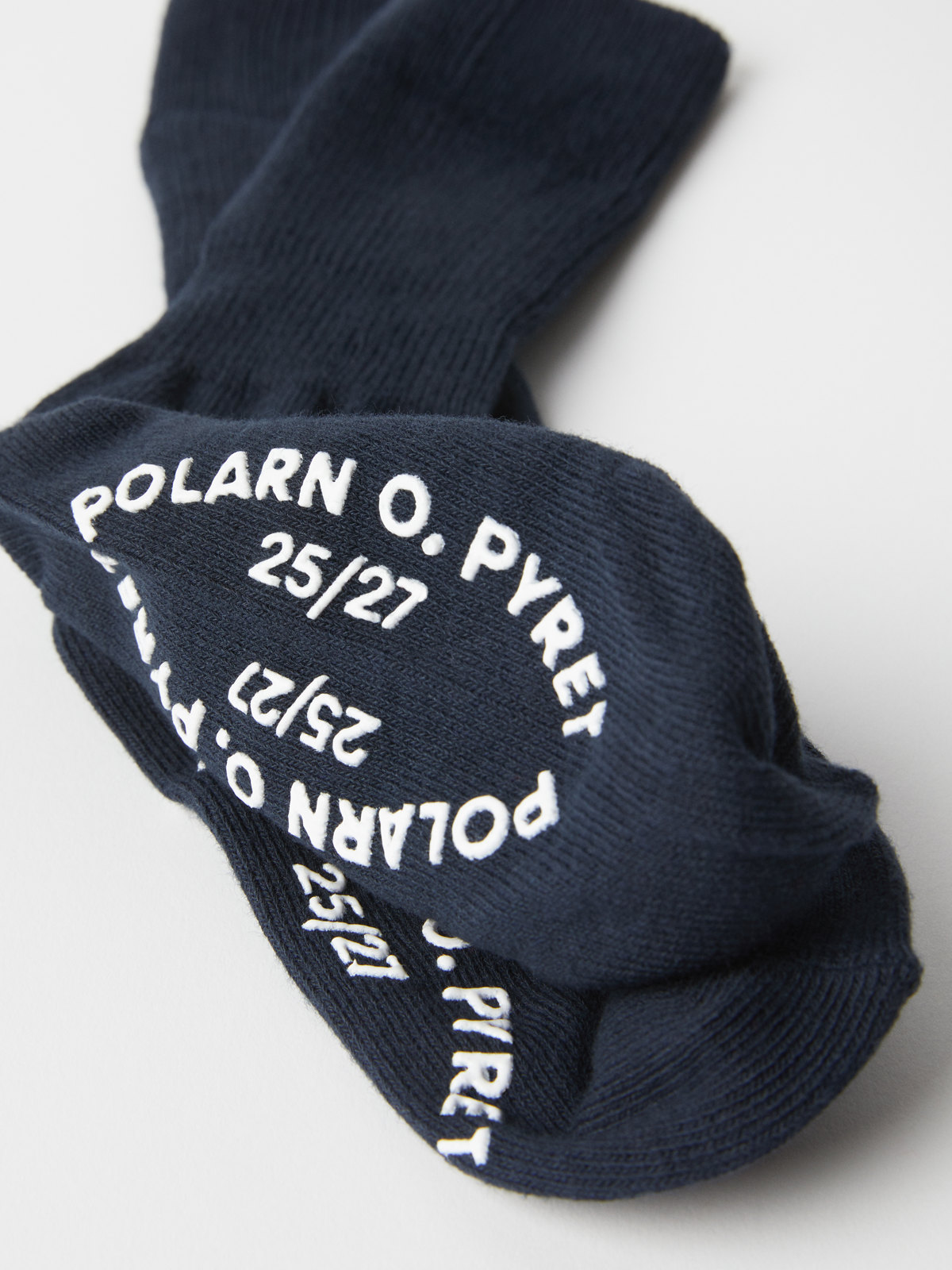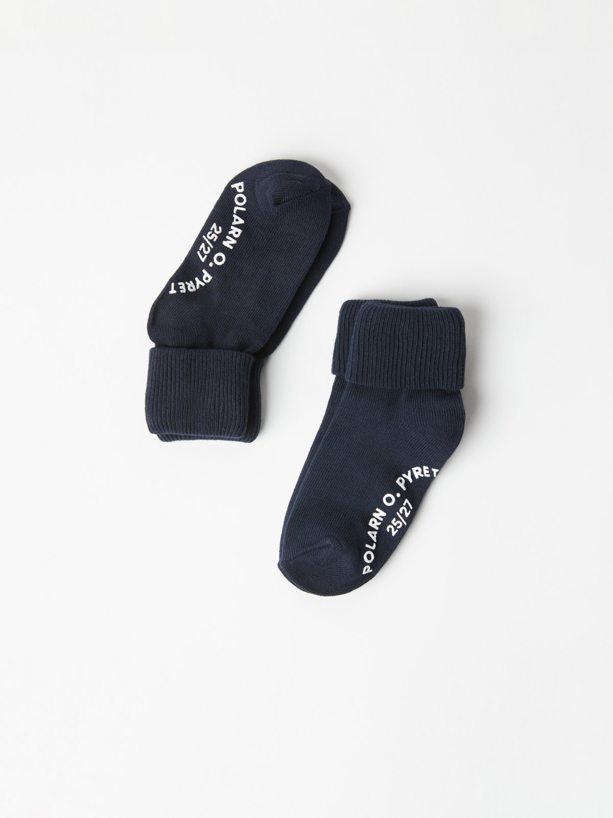 Tvåpack strumpor med halkskydd. Strumporna är tillverkade i mjuk ekologisk bomull och har en mudd som kan vikas upp eller ned. Den här produkten ingår i vårt 3 för 2-erbjudande, som ej kan kombineras med andra erbjudanden.