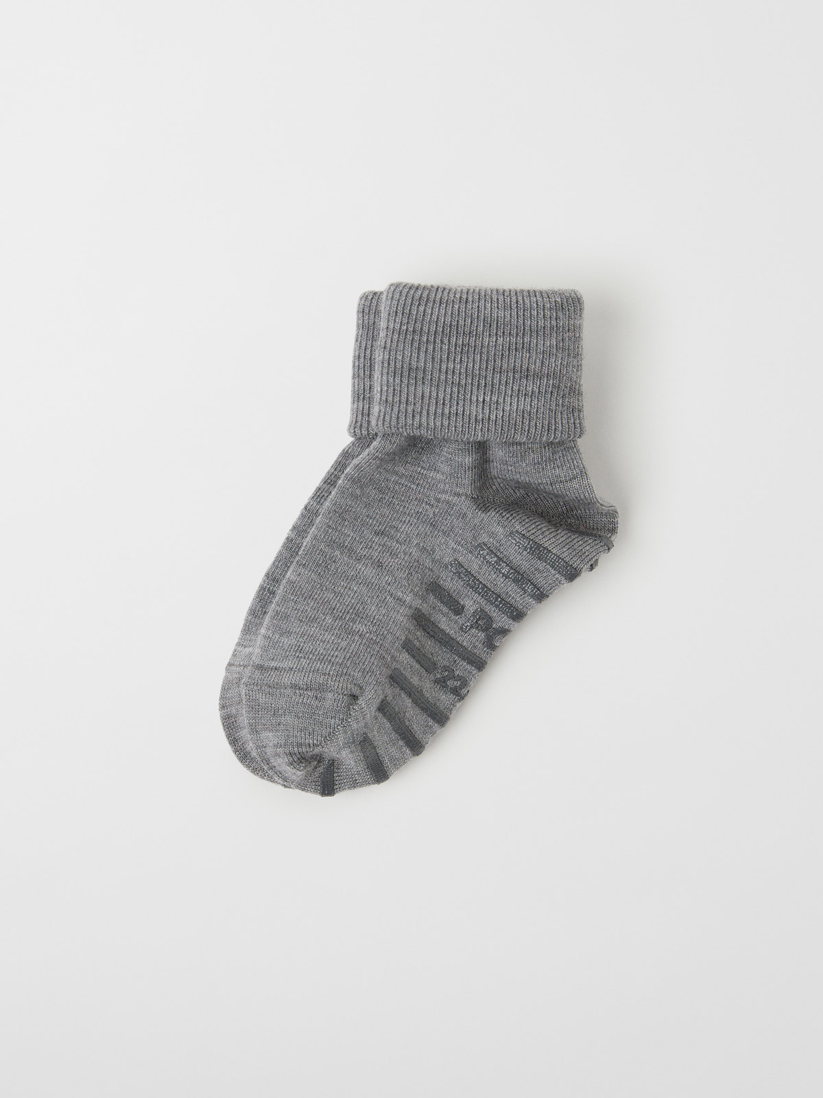 Ett par tunna och sköna strumpor i mjuk merinoull som värmer gott. Strumporna har halkskydd och en mudd som kan vikas upp eller ned och gör att de sitter kvar även på livliga fötter.