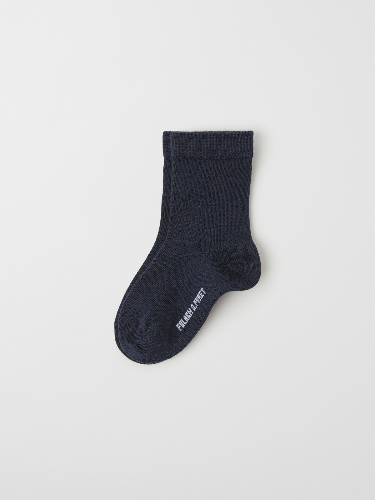 Ett par jaquardmönstrade strumpor i tunn merinoull som värmer gott och är mjuka för små fötter. Storleken är markerad på insidan av skaftet. Där finns också plats att skriva barnets namn. Lätt att hålla ordning!