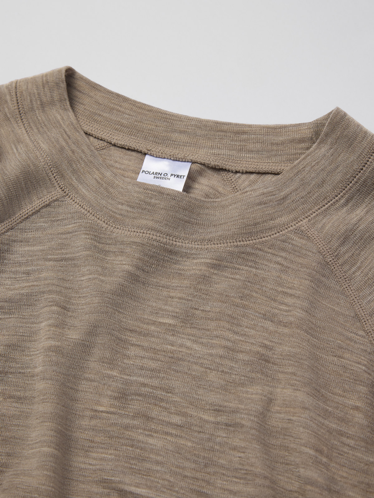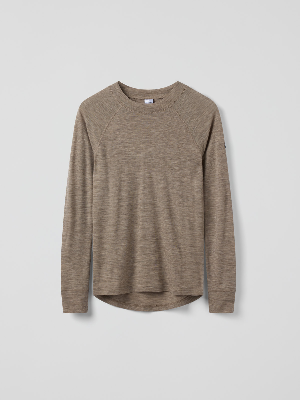 Enfärgad tröja i mjuk och värmande merinoull – perfekt som förstalager närmast kroppen. Merinoullen värmer även i blött tillstånd och hjälper till att reglera kroppstemperaturen. Tröjan är sydd med extra mjuka sömmar och passar perfekt tillsammans med tillhörande byxor som underställ under kalla vinterdagar.