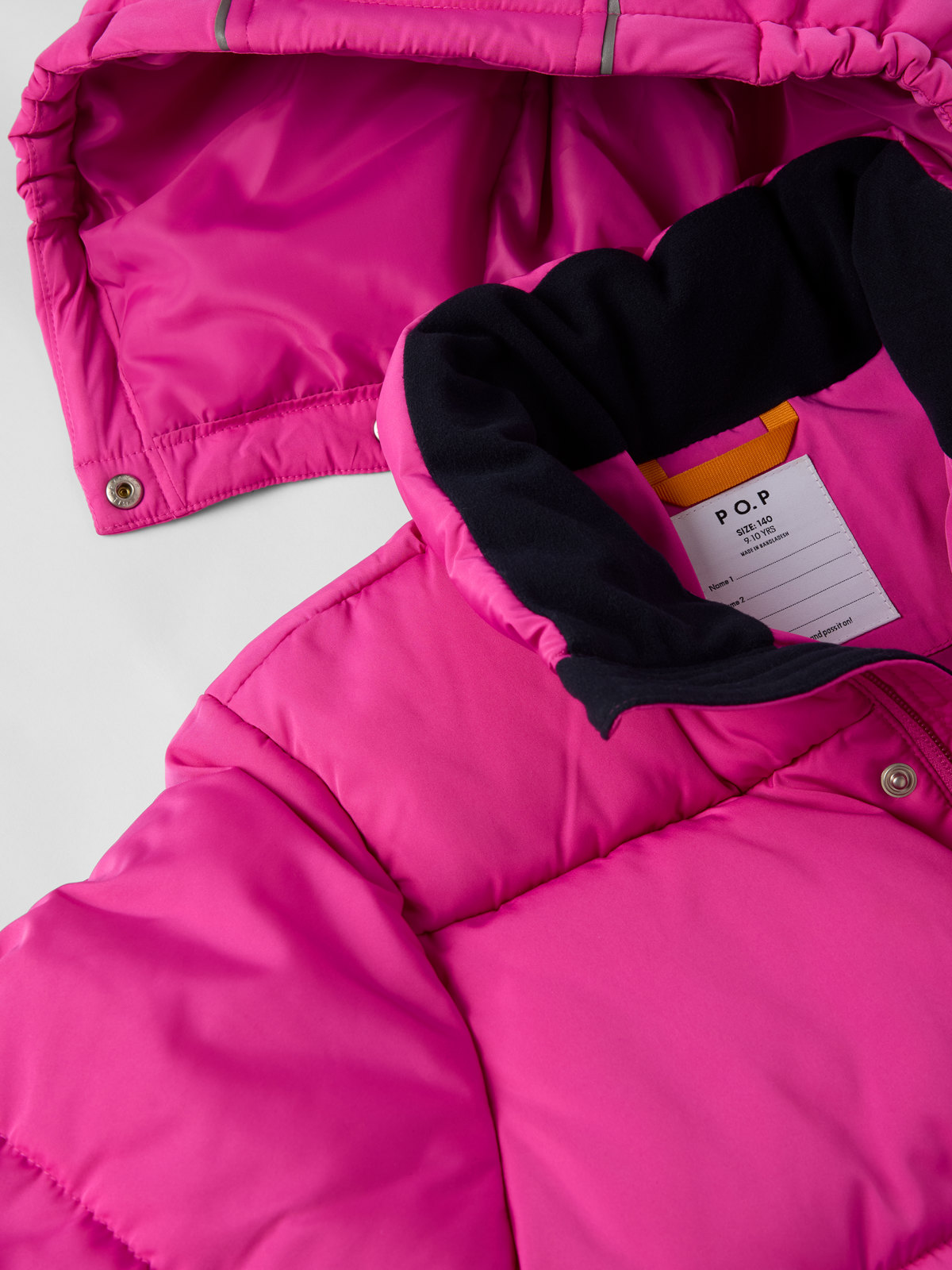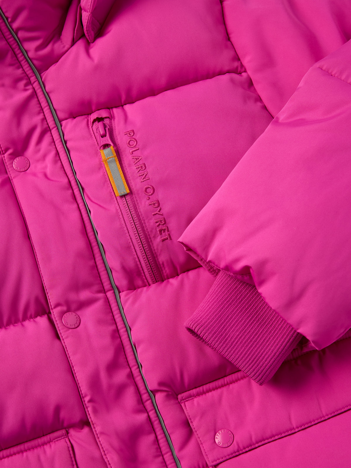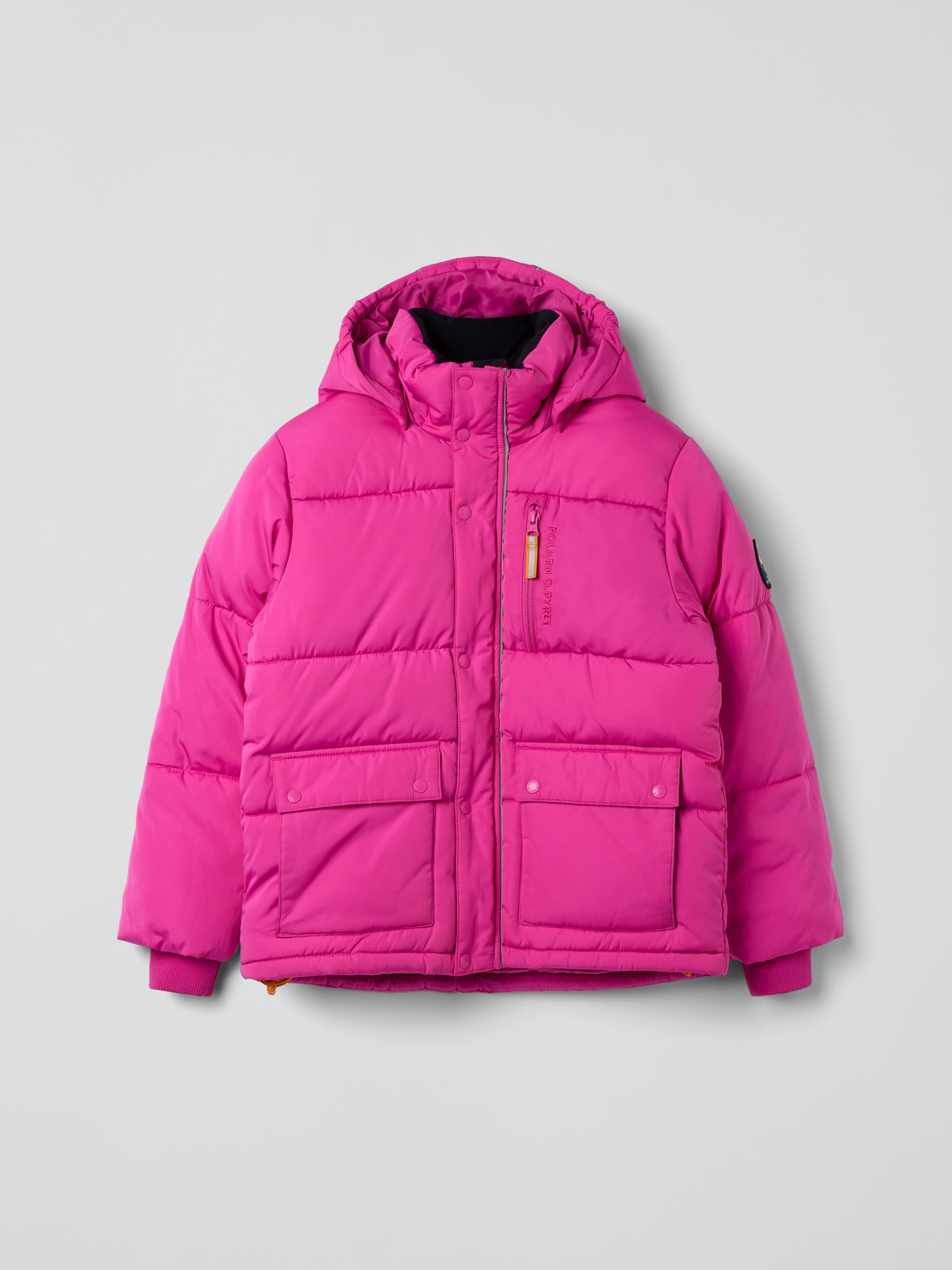 Tjock, mjuk och isolerande jacka designad för härliga utflykter i natur eller stad under årets kallaste säsong – en riktig vinterfavorit! Jackan har tjock vaddering av återvunnen polyester som tillsammans med tygets täta väv stänger ute viss vind, lättare regn och snö. Jackan har elastiskt ärmslut och två stora fickor fram och en justerbar huva.