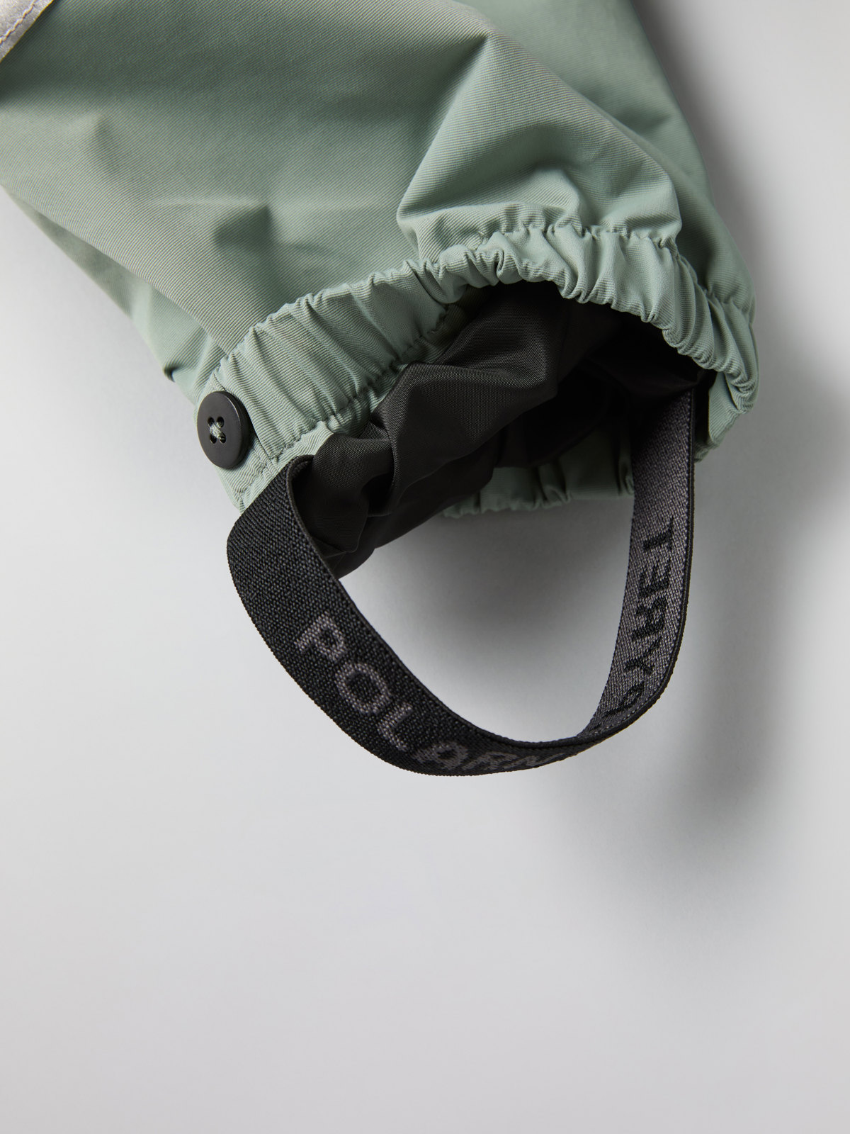Plagget är tillverkat i vattentätt material med minst 10 000 vattenpelare – det betyder att ditt barn kan vara ute i spöregn utan problem.