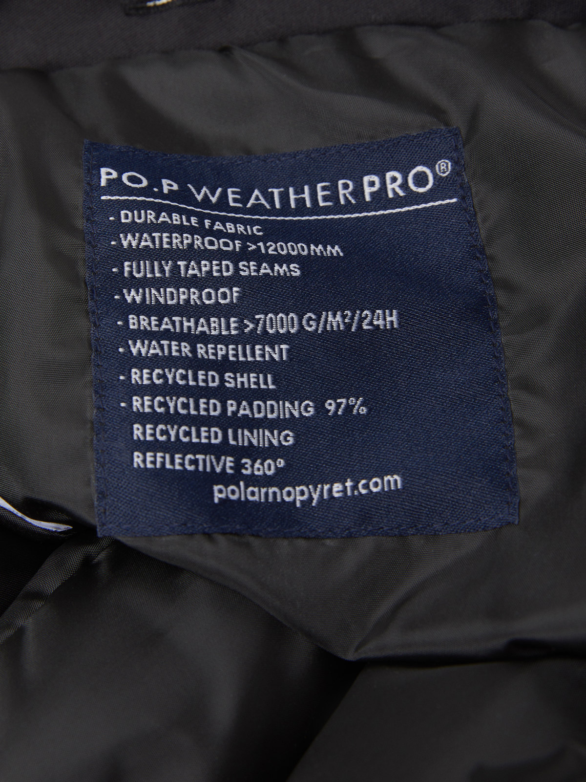 Ytterkläder märkta PO.P WeatherPro® uppfyller alla våra krav för funktionsytterplagg, oavsett om det gäller slitstyrka, vattentäthet, andningsförmåga eller barnsäkerhet.