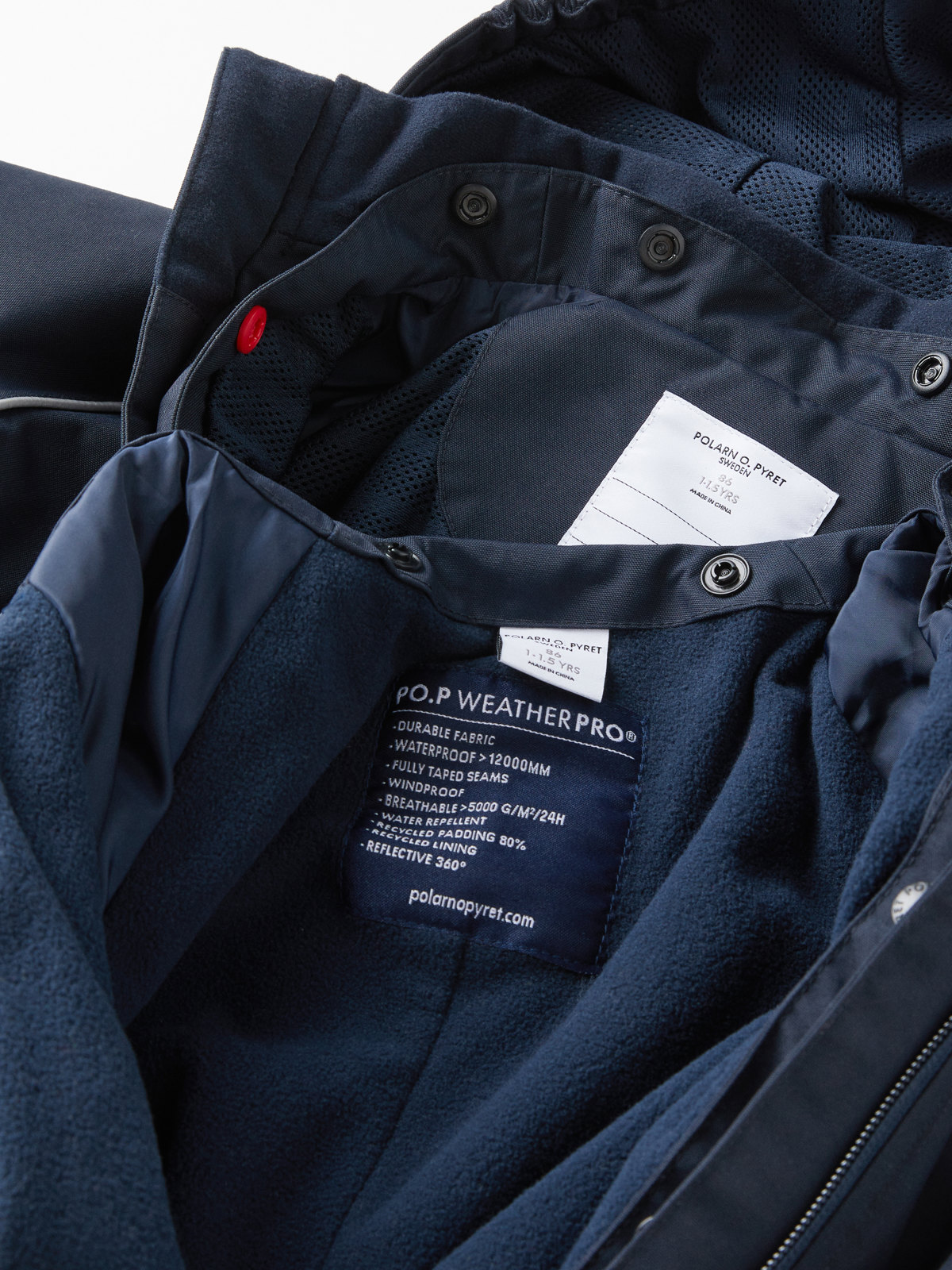 Ytterkläder märkta PO.P WeatherPro® uppfyller alla våra krav för funktionsytterplagg, oavsett om det gäller slitstyrka, vattentäthet, andningsförmåga eller barnsäkerhet.
