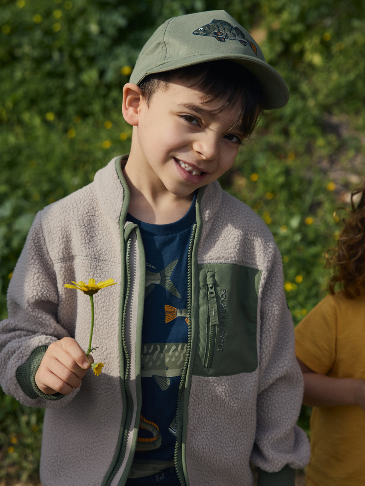 Pilefleecejacka i mjukt och skönt material tillverkat av återvunnen polyester. Ett riktigt gosigt favoritplagg som håller barnen varma under härliga vår- och höstäventyr!