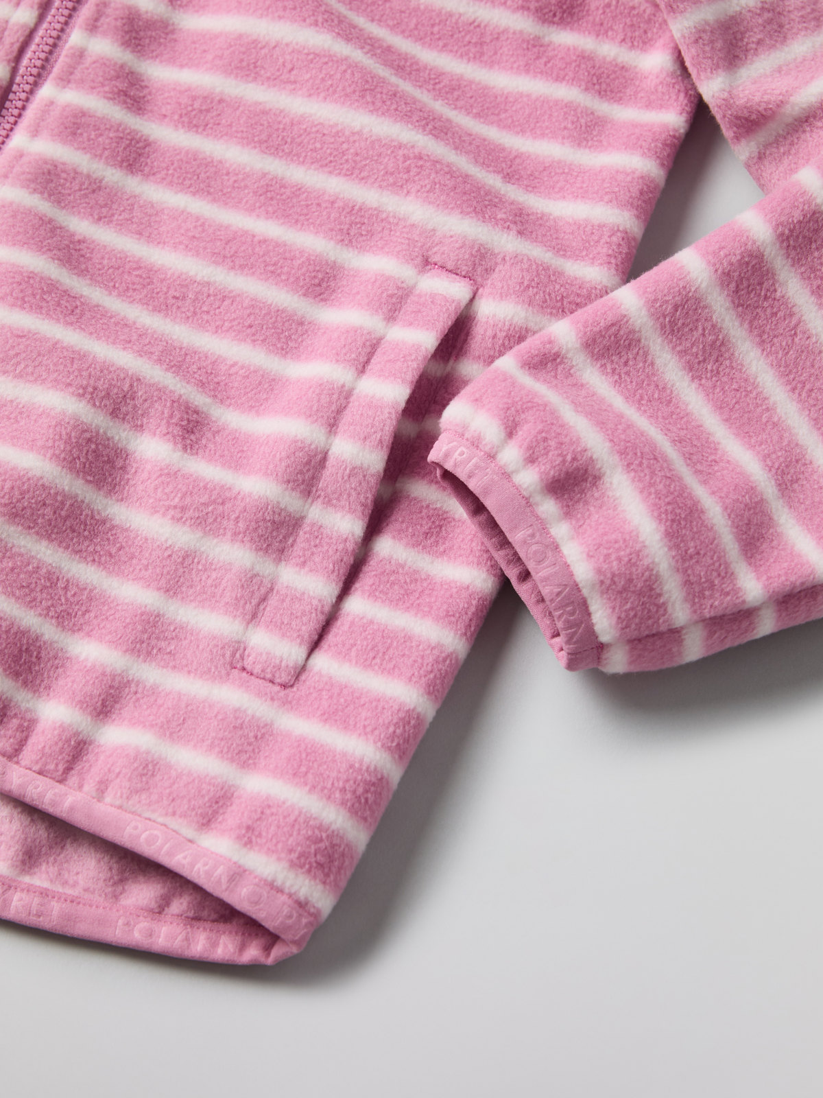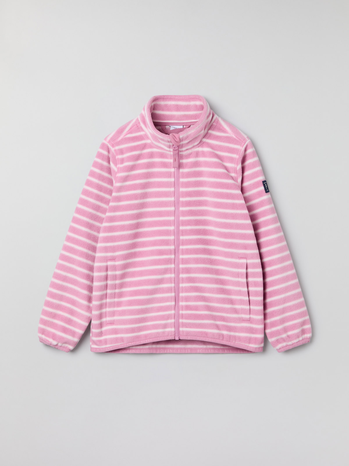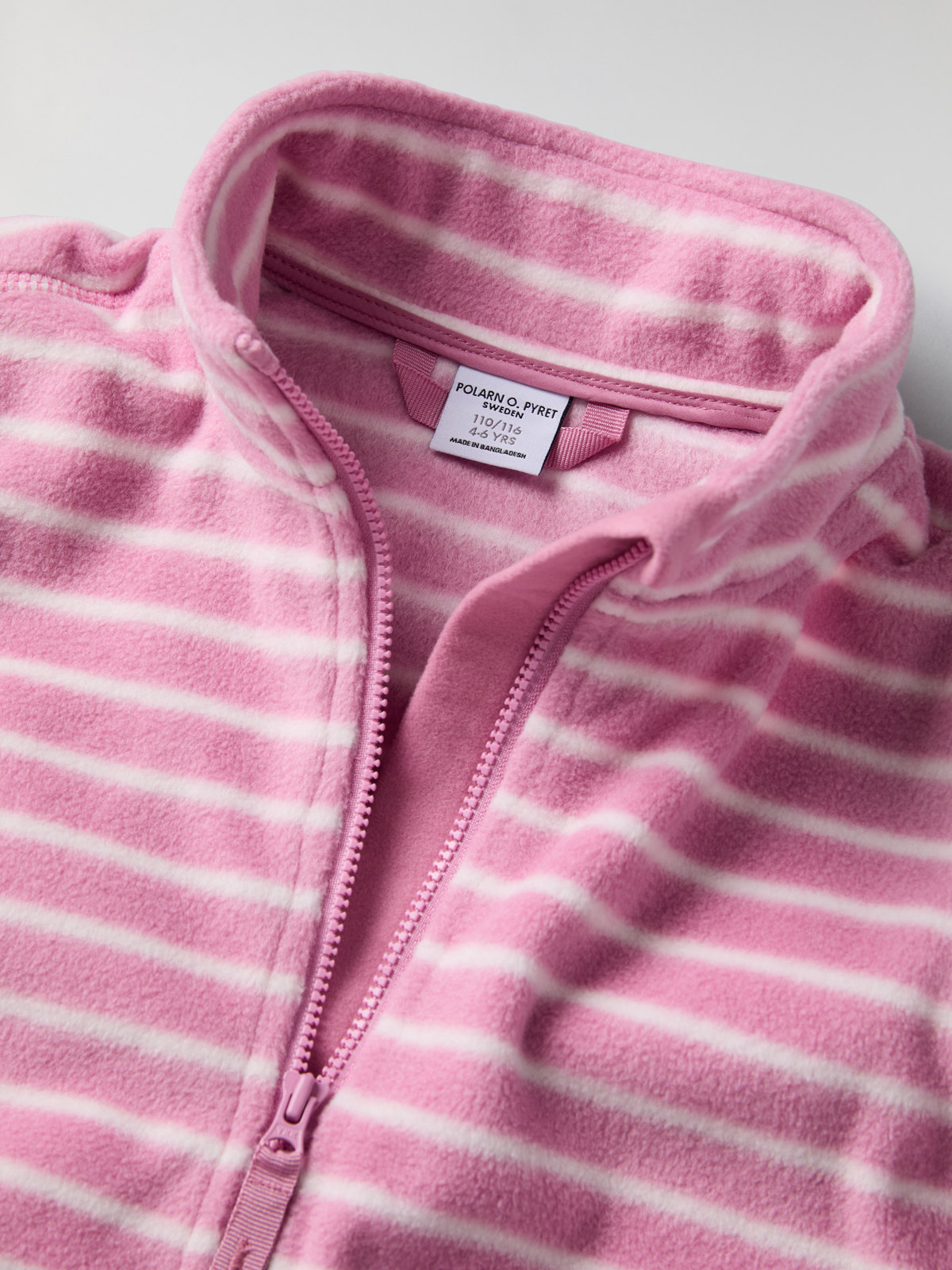 Randig jacka i mjuk och skön fleece. Passar perfekt som ett värmande lager under ytterplagg både på höstens och vårens utflykter, och lika skön som ytterjacka i milt väder.