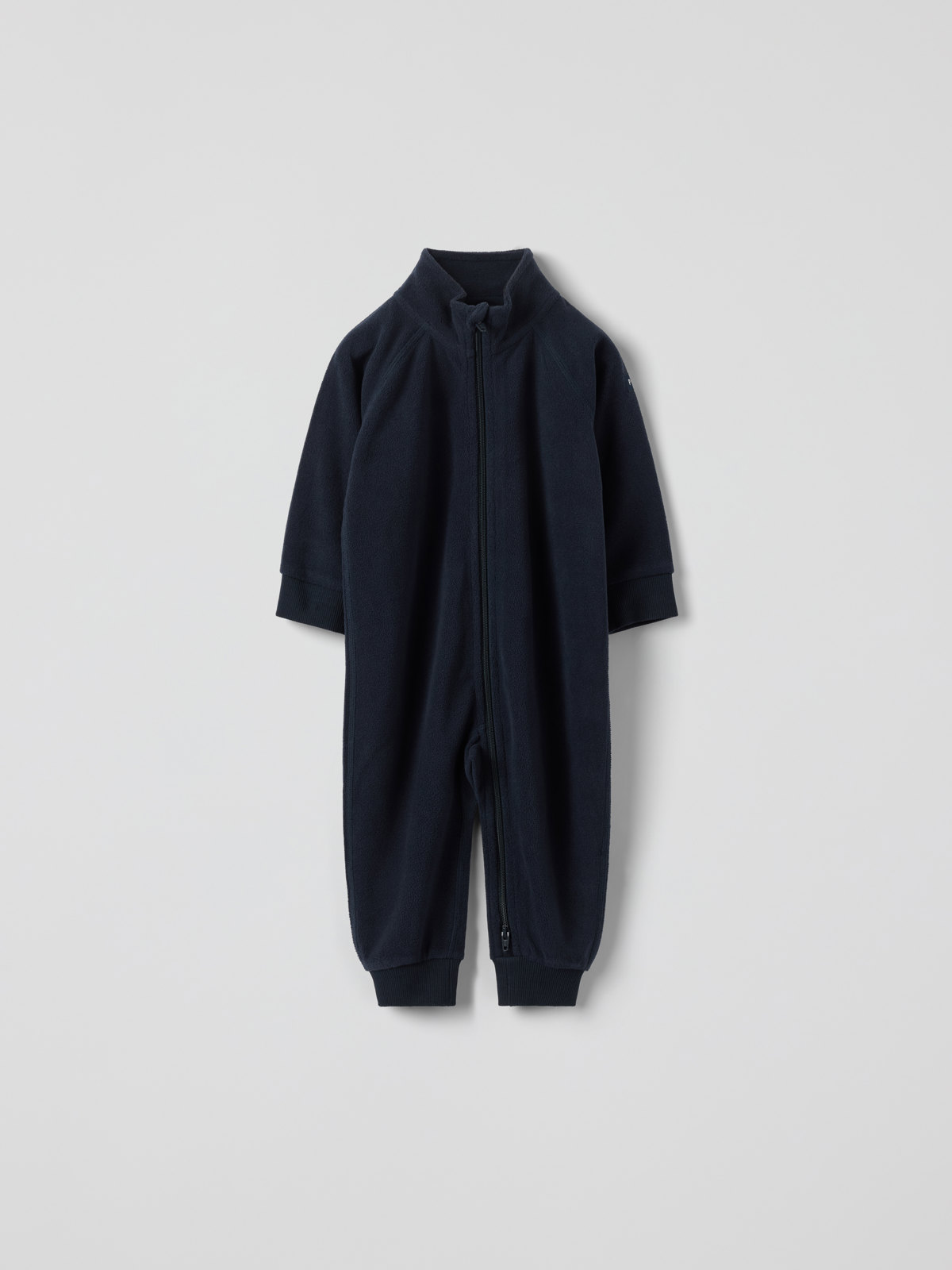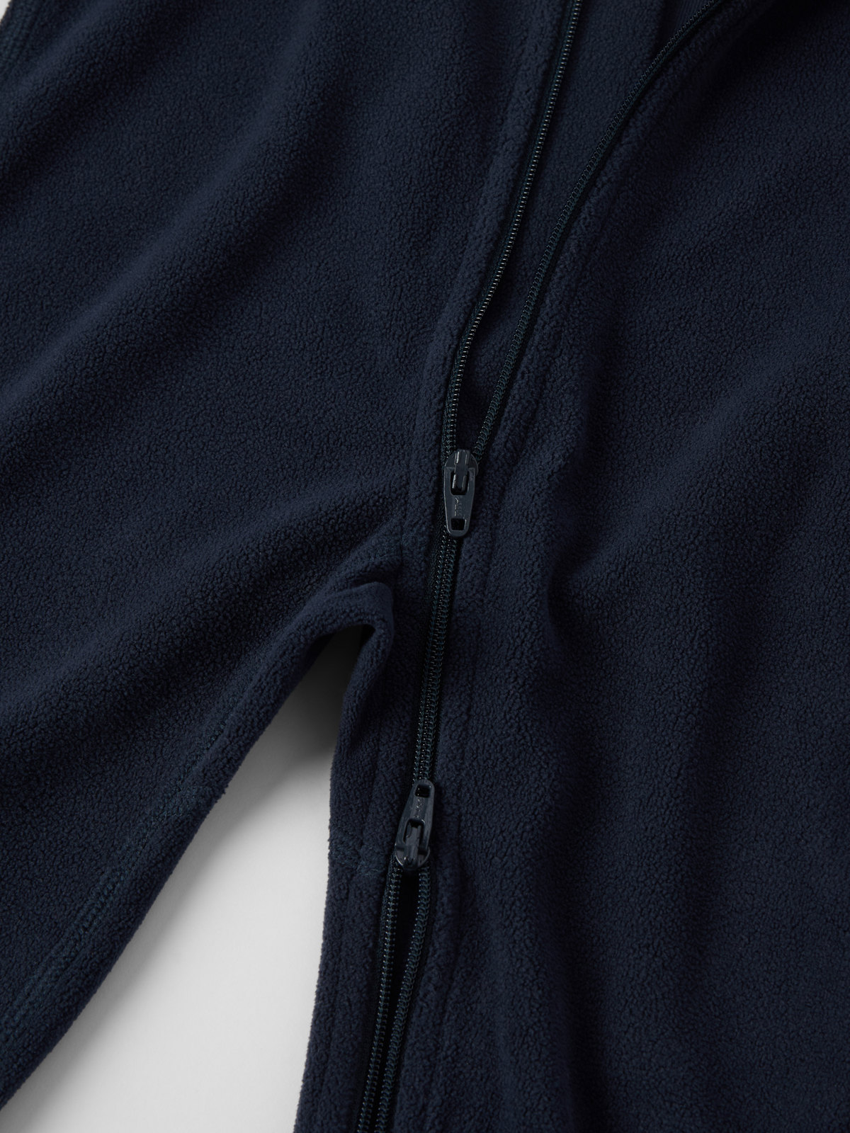 Mjuk och go fleeceoverall i återvunnen polyester som transporterar bort fukt och håller ditt barn varmt och torrt – perfekt som lager 2 under ytterkläder! Overallen har lång dragkedja och mjuka muddar i ärm- och benslut för en skön passform. Dragkedjan har ett skydd högst upp för att inte skava mot haka och kind.