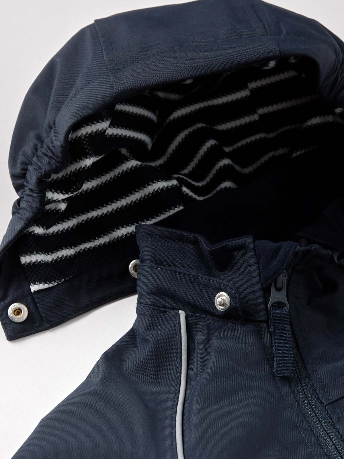• Den reglerbara huvan är avtagbar och går att fästas med tryckknappar för ökad säkerhet, den har även elastik i sidorna för bästa passform