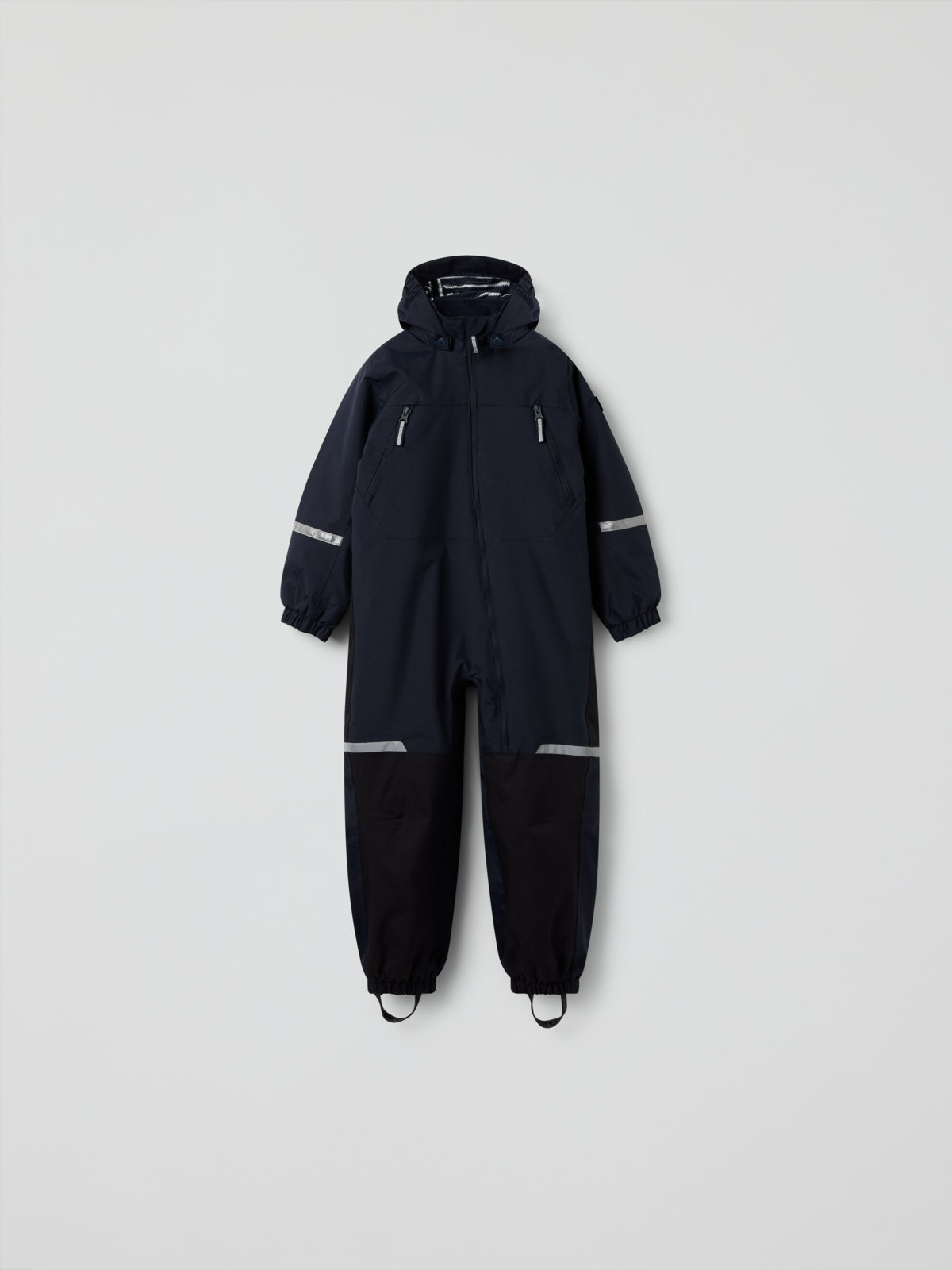 • Den kontrastfärgade startknappen som finns på insidan, gör att du enkelt kan knäppa ihop fleecefodret med overallen