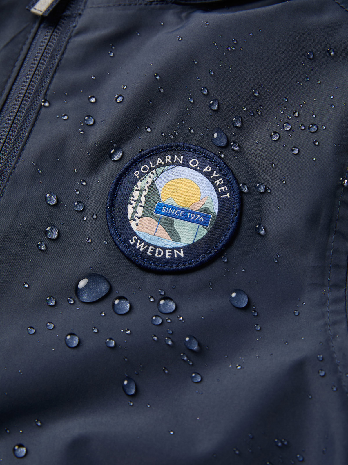 Vind- och vattentät jacka i tunt, smidigt material av återvunnen polyester – perfekt att ha i ryggsäcken för att snabbt kunna dra på om regnet kommer! Materialets goda andningsförmåga släpper ut överskottsvärme och fukt.