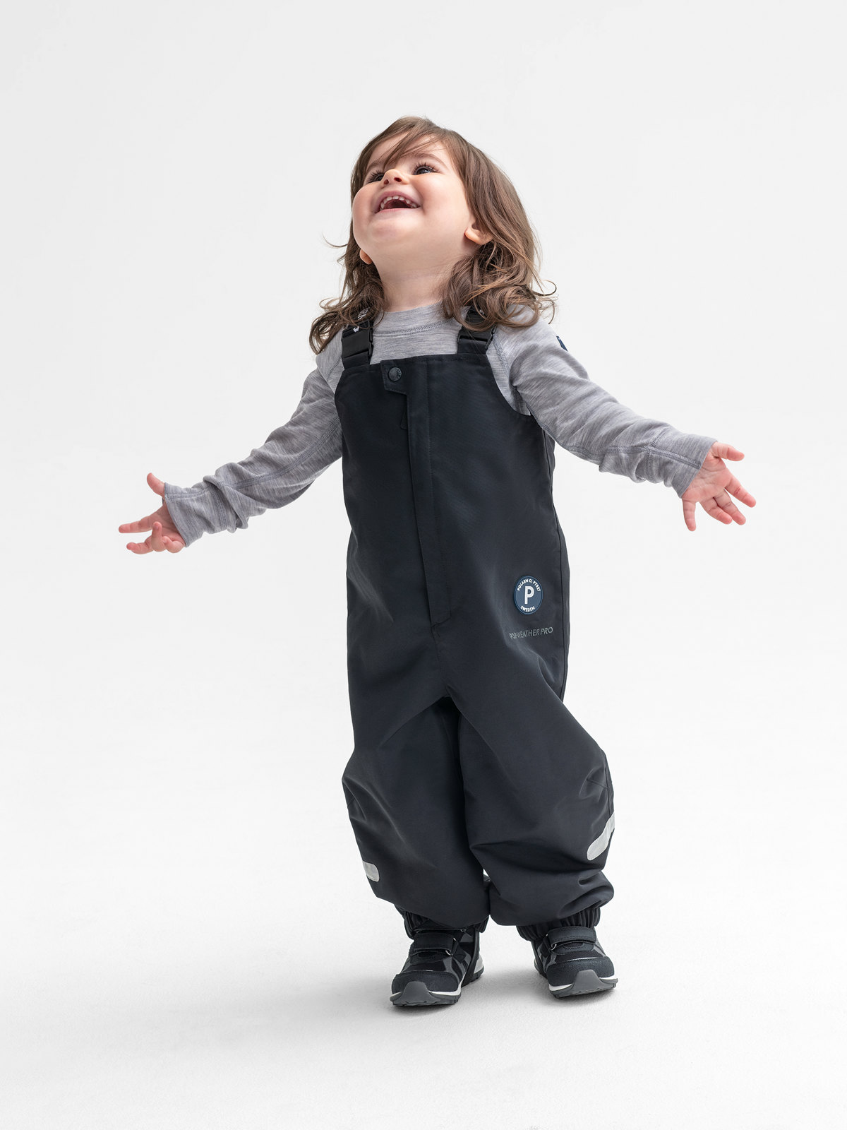 Ytterkläder märkta PO.P WeatherPro® uppfyller alla våra krav för funktionsytterplagg, oavsett om det gäller slitstyrka, vattentäthet, andningsförmåga eller barnsäkerhet.