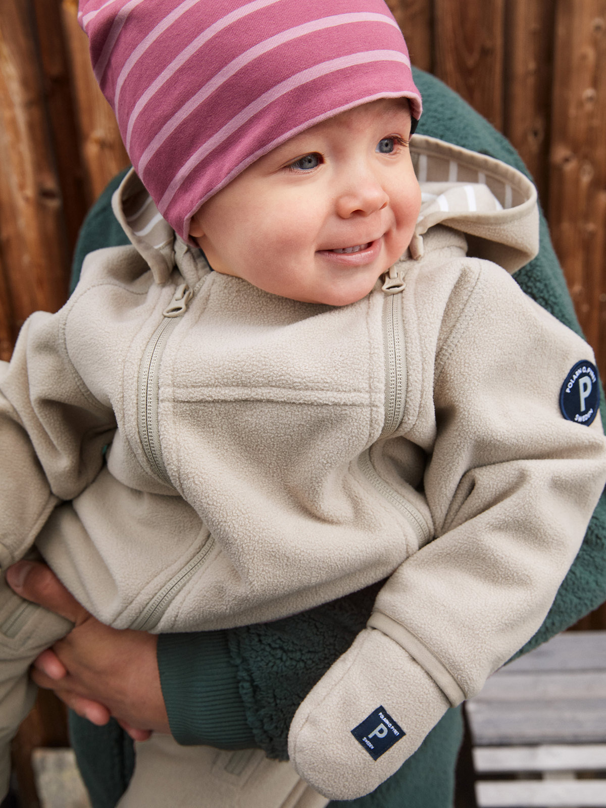 En vindtät och vattenavvisande vindfleeceoverall för baby. Perfekt att ha i vagnen!