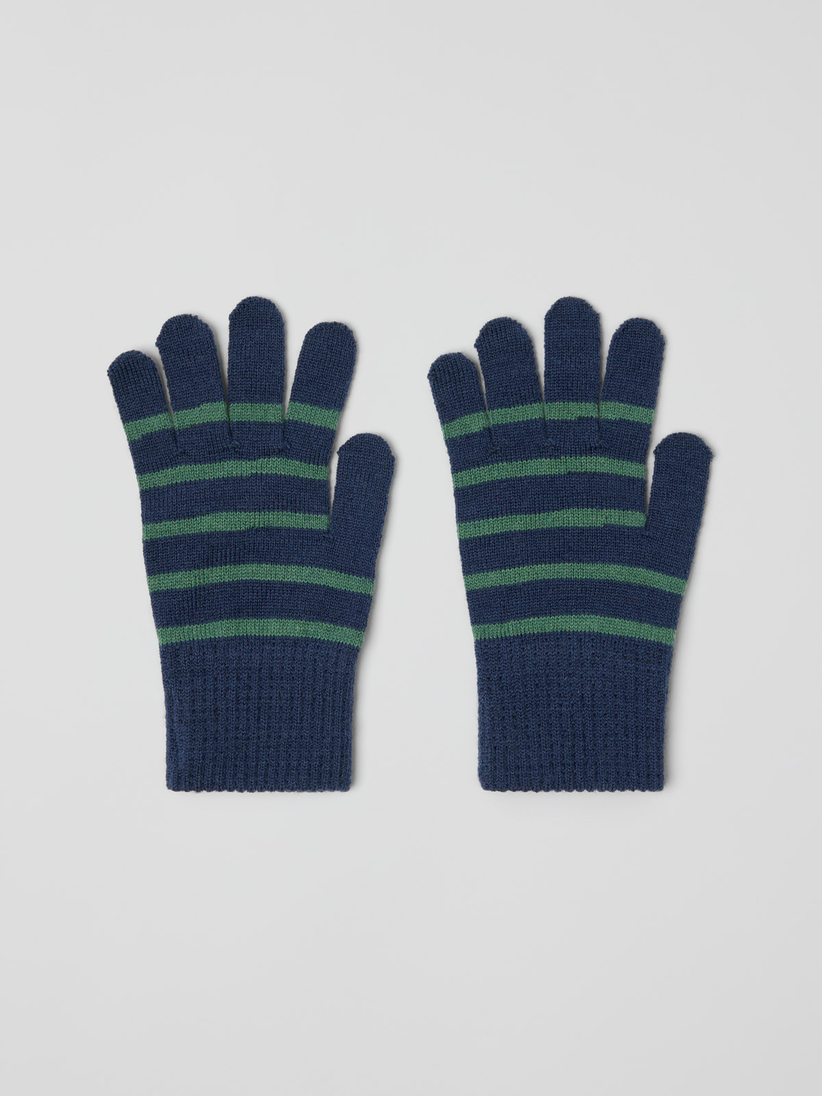 Stickade fingervantar i ullmix. Vantarna har vår klassiska rand och töjer sig efter handens storlek.