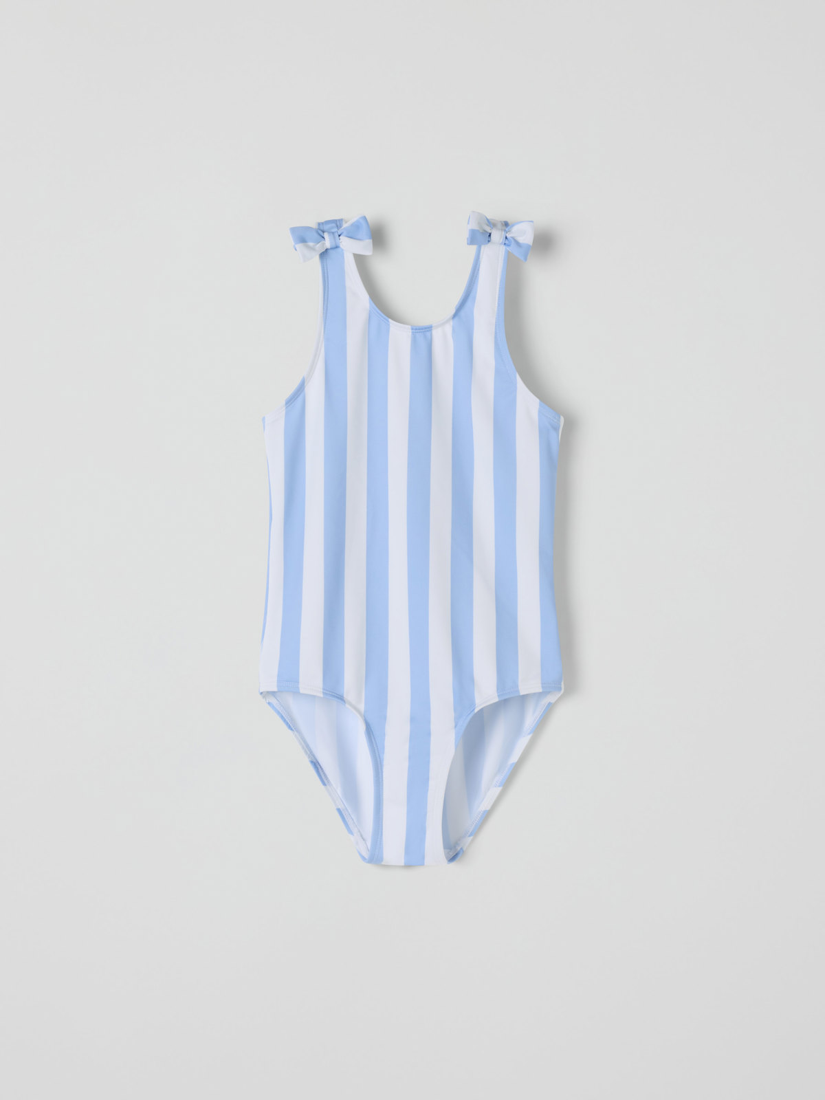 Striped swimsuit made from soft, comfortable recycled polyester. The swimsuit features a large cherry motif on the front and decorative knots on the shoulder straps. It has a lined gusset and is crafted with extra-soft seams for all-day comfort.