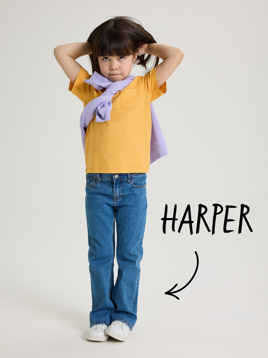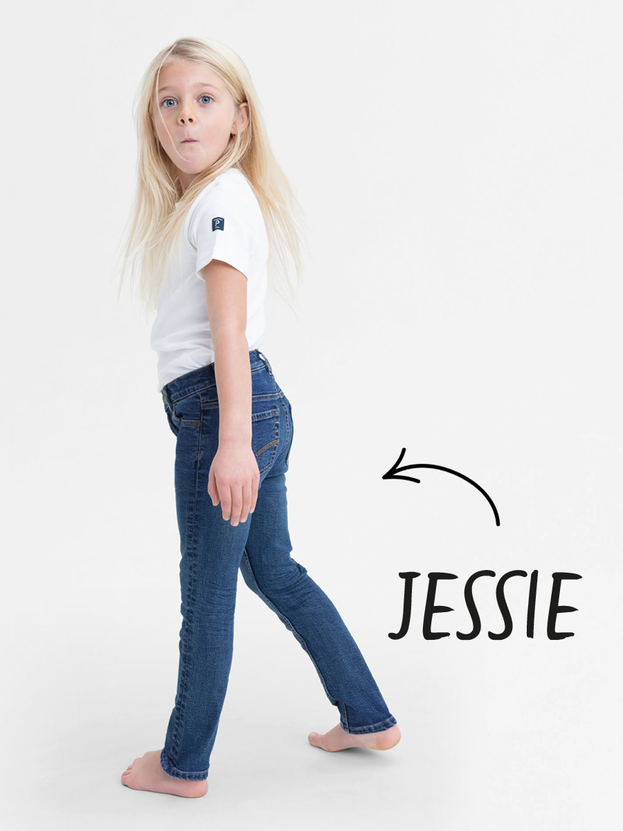 Här hittar du våra olika passformer på jeans. För att göra det enklare för dig att komma ihåg favoriterna, har vi märkt våra olika modeller med namn. Du hittar namnet i fickan! Visste du förresten att våra jeans från våren 2022 och framåt är tillverkade i 100% GOTS-certifierad bomull?